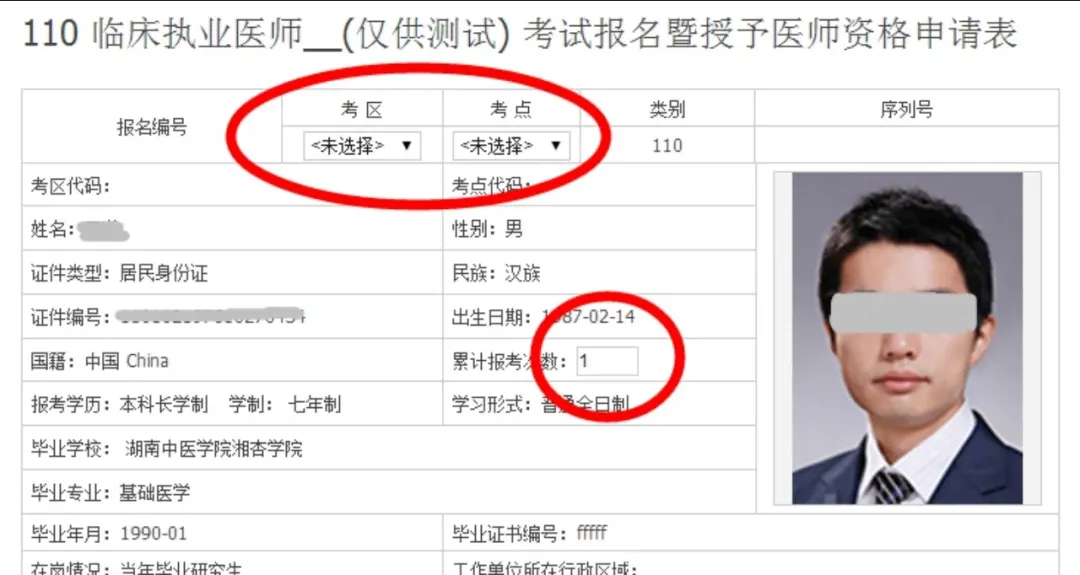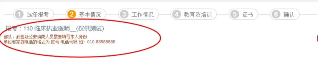 -若在个人信息完善中尚未上传照片,则在基本情况一组中需要注意完成照片上传(照片要求为jpg格式文件,不要大于40k)-台港澳人士参加医学考试时需要填写「往来大陆通行证一项」-现役军人(需要加考军事医学)人员需要准确填写「本人身份」一项3. 工作情况