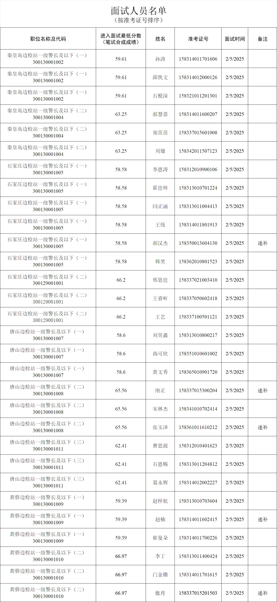 根据公务员录用工作有关规定,河北出入境边防检查总站将组织开展考试录用公务员资格复审、心理素质测评、体能测评、面试、体检等环节相关工作,现就有关事宜公告如下。