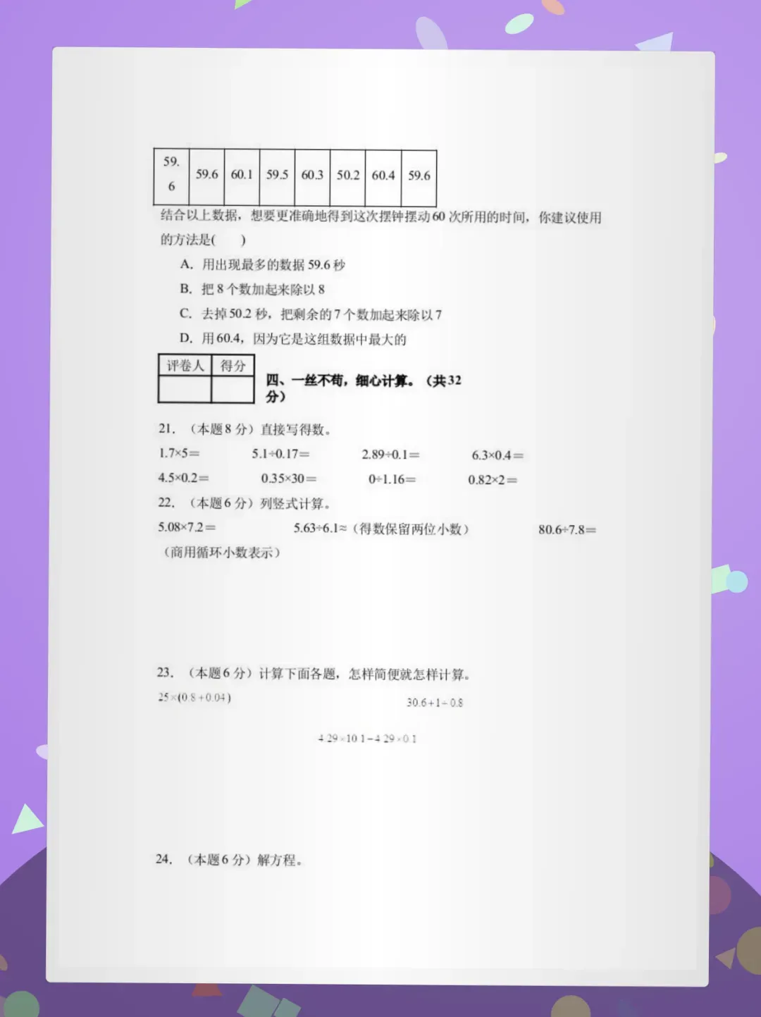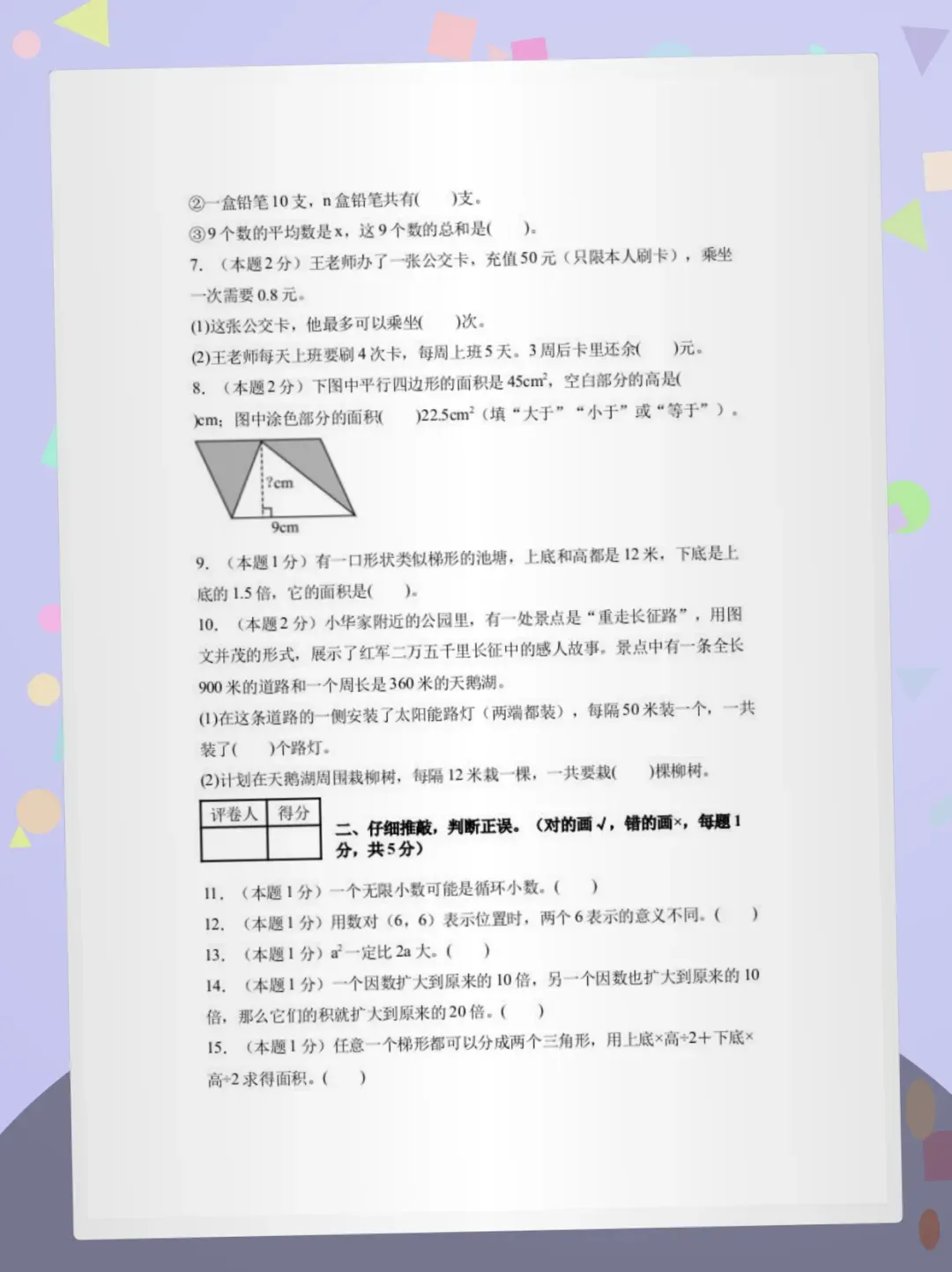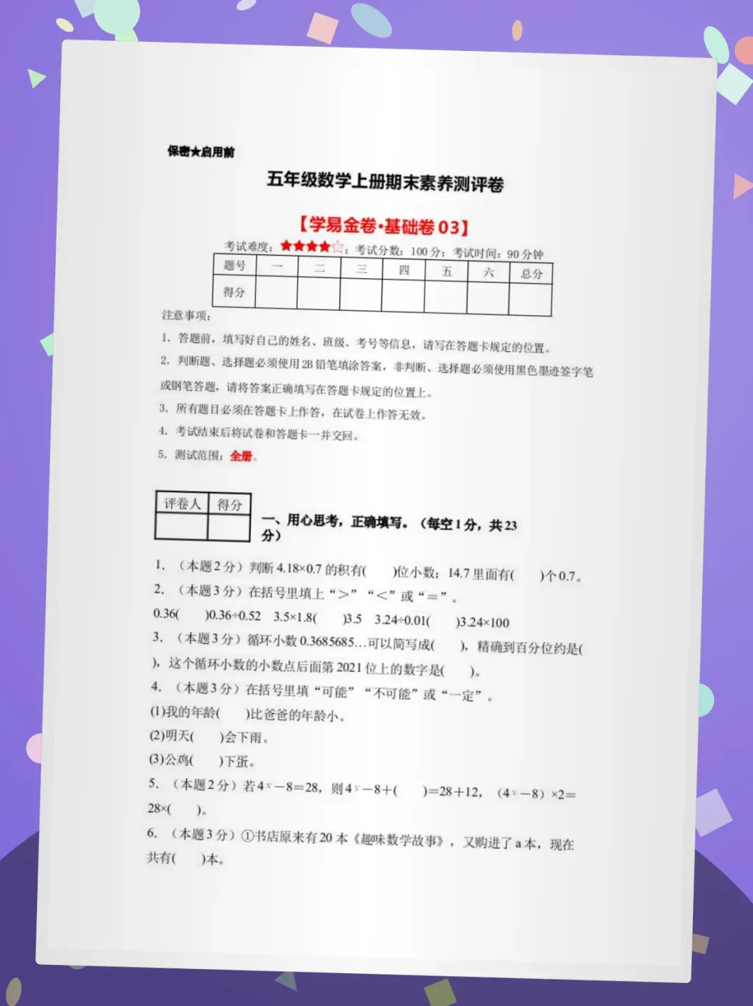 #五年级数学 #期末试卷 #人教版 #小学数学 #备考资料 #素养测评 #数学提分 #家长收藏 #单元测试 #期中期末