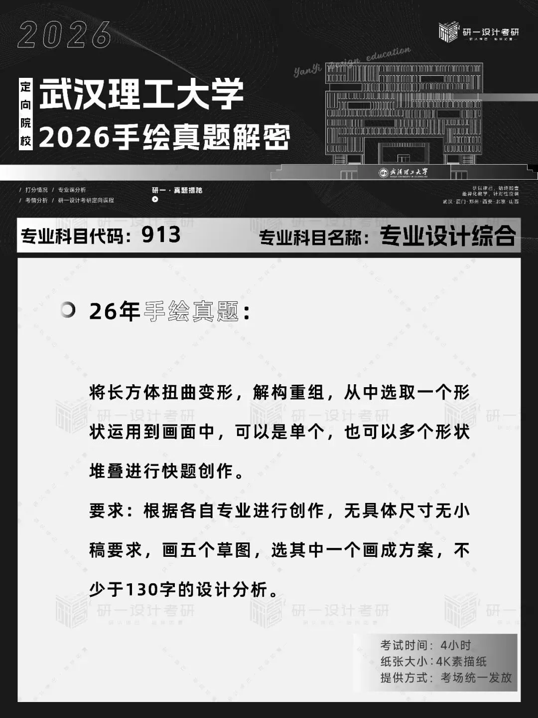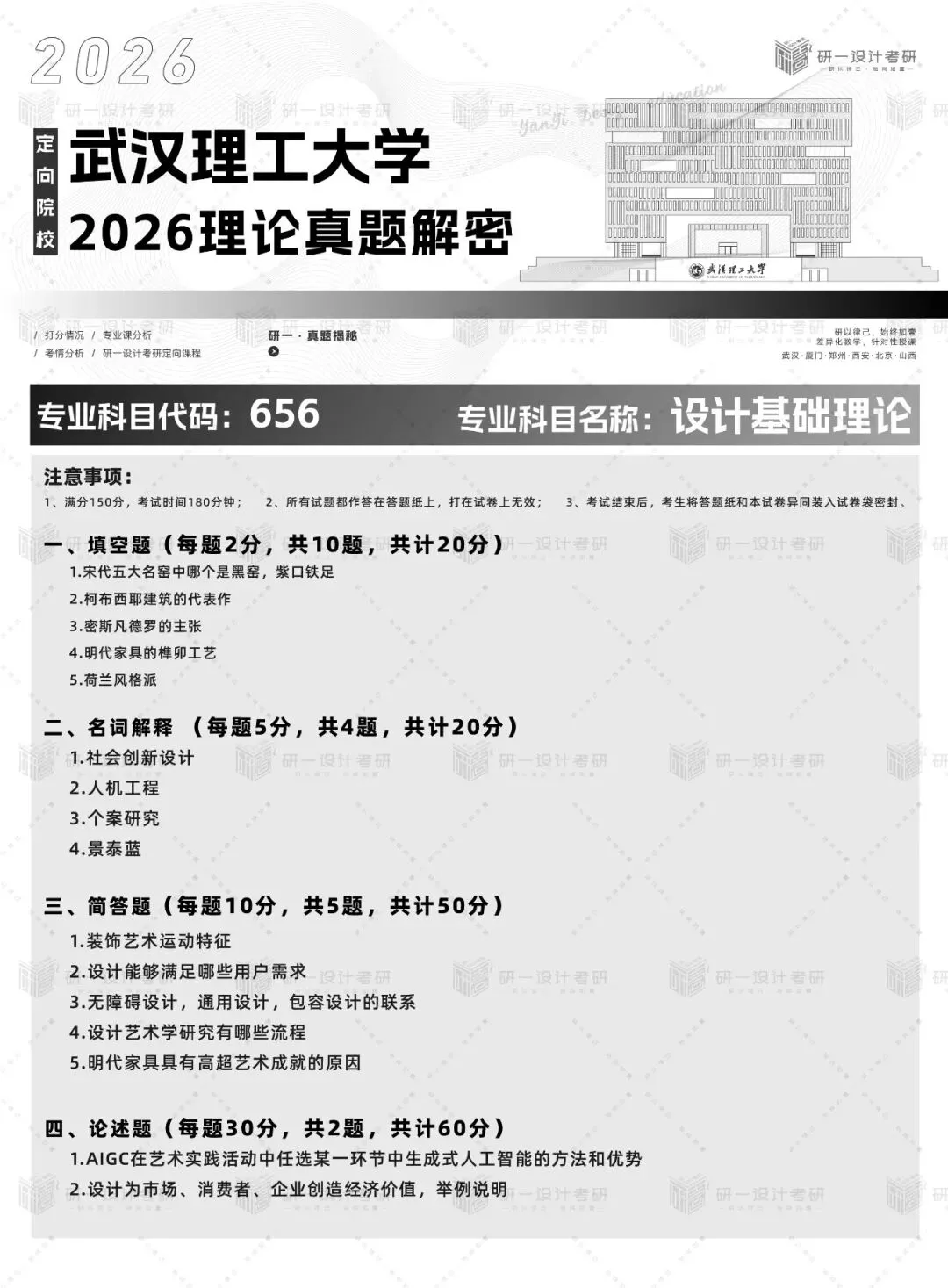 2026考研初试已然落下帷幕,现在,就让我们一同聚焦 武汉理工大学艺设学院 913专业设计综合 & 656设计基础理论 的真题,为后续备考的同学们提供宝贵的参考。-