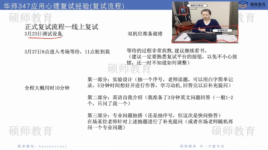 复试备考阶段,我们将为各位学员邀请已经上岸的学长学姐为大家开展复试经验分享讲座,主要针对复试流程说明,为大家讲解复试注意事项,包含但不限于:复试备考解析、复试考试内容解析、复试备考资源与策略、复试备考规划与管理。