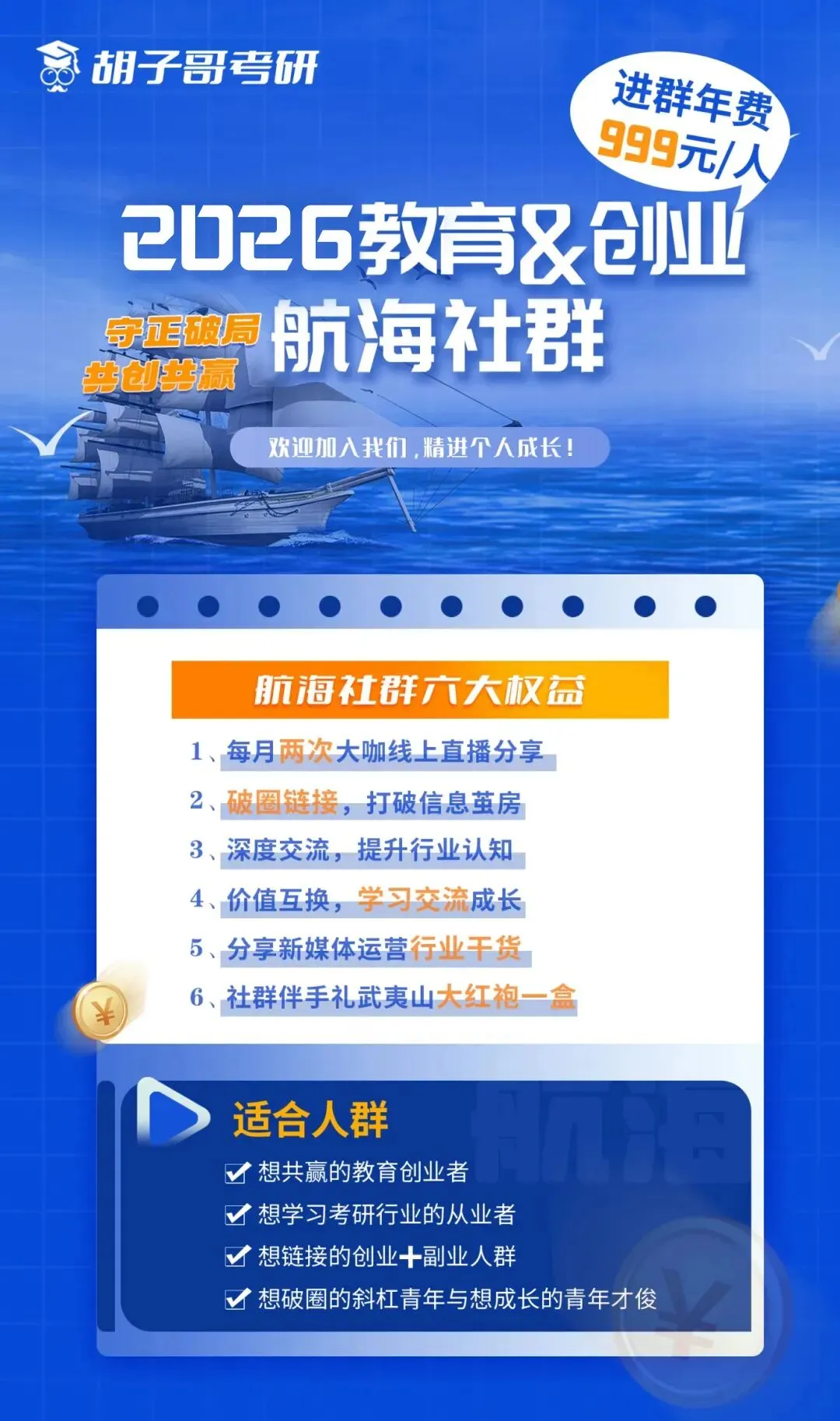 如果你也想和更多考研机构的老师,老板们来交流,或者是看一下别人都是怎么样做业务的,那么我真的非常推荐咱们来这一个教育类的航海社群