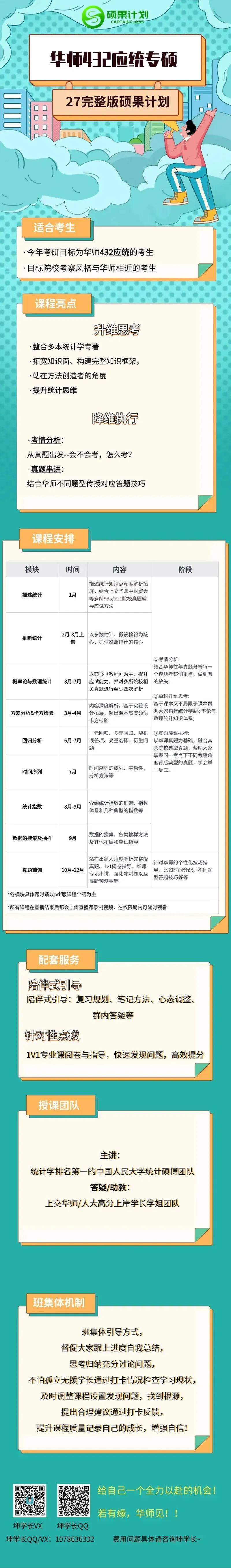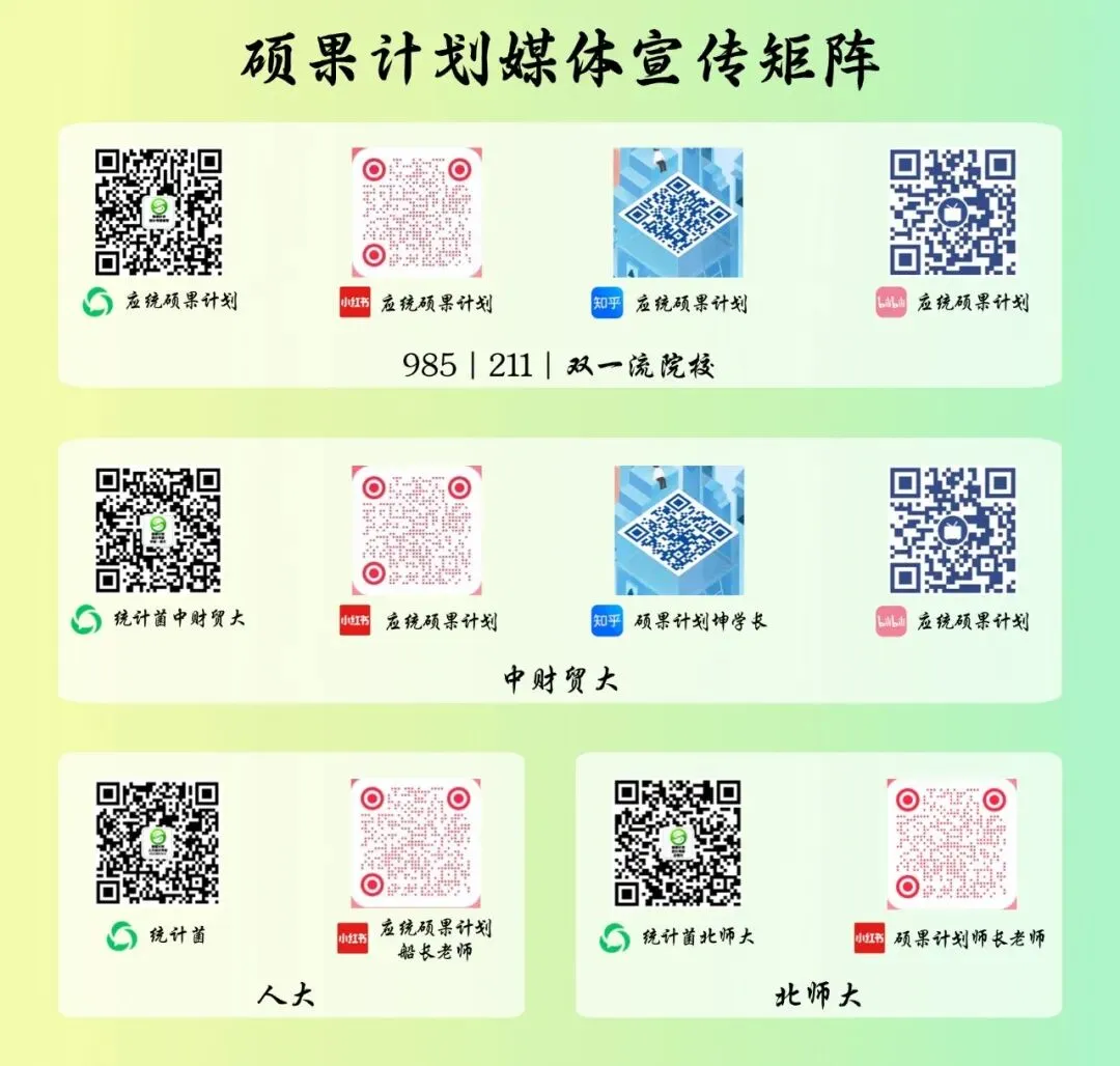 A4:硕果授课团队均来自中国人民大学统计硕博同学,均有5年以上授课经验,而不是随便喊一位刚上岸同学来去讲课~但硕果团队中有刚上岸华师的小伙伴,保证信息更新的及时性~整体华师课程由坤学长进行统筹~有任何疑问都可以直接咨询坤学长~