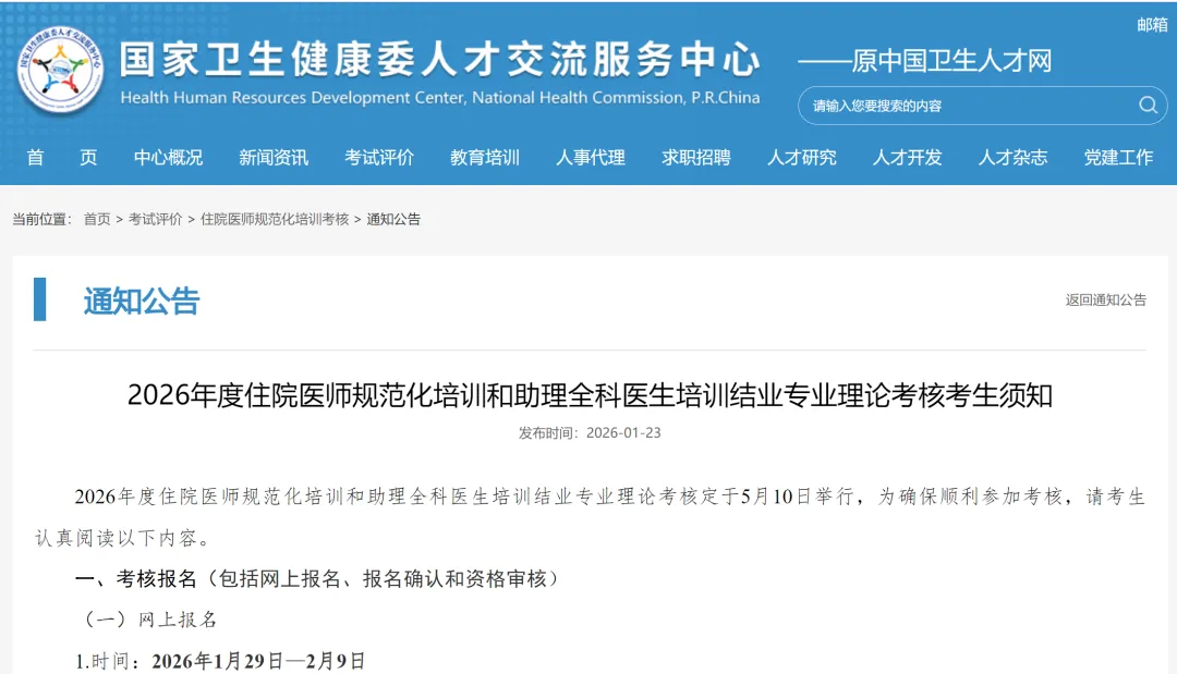 2026年度住院医师规范化培训和助理全科医生培训结业专业理论考核定于5月10日举行,为确保顺利参加考核,请考生认真阅读以下内容。