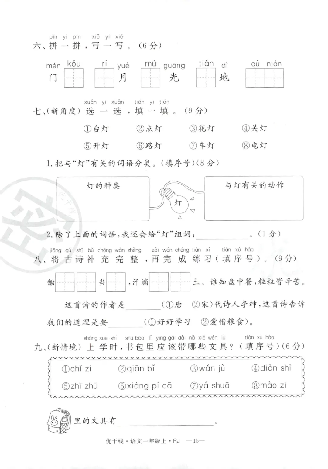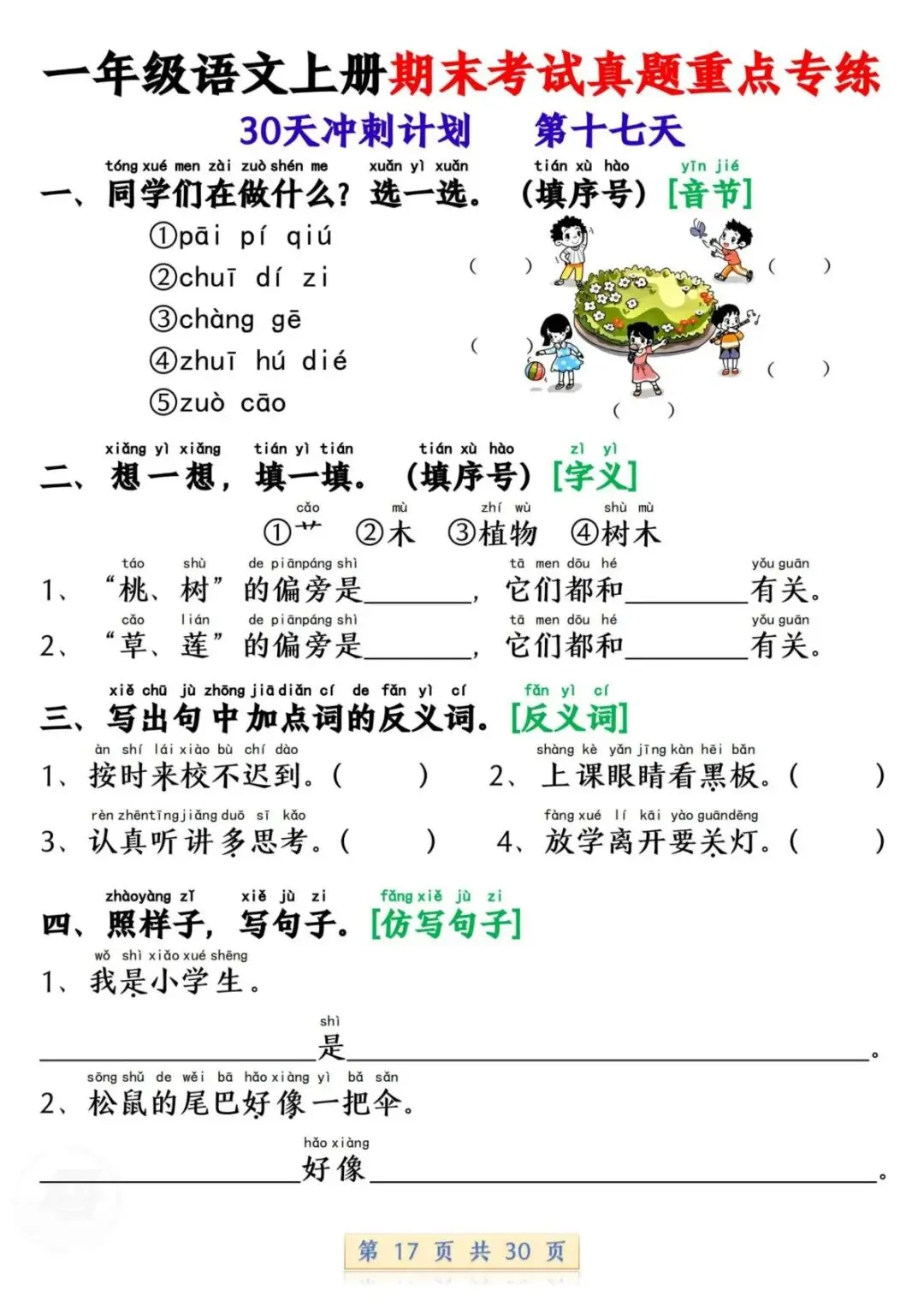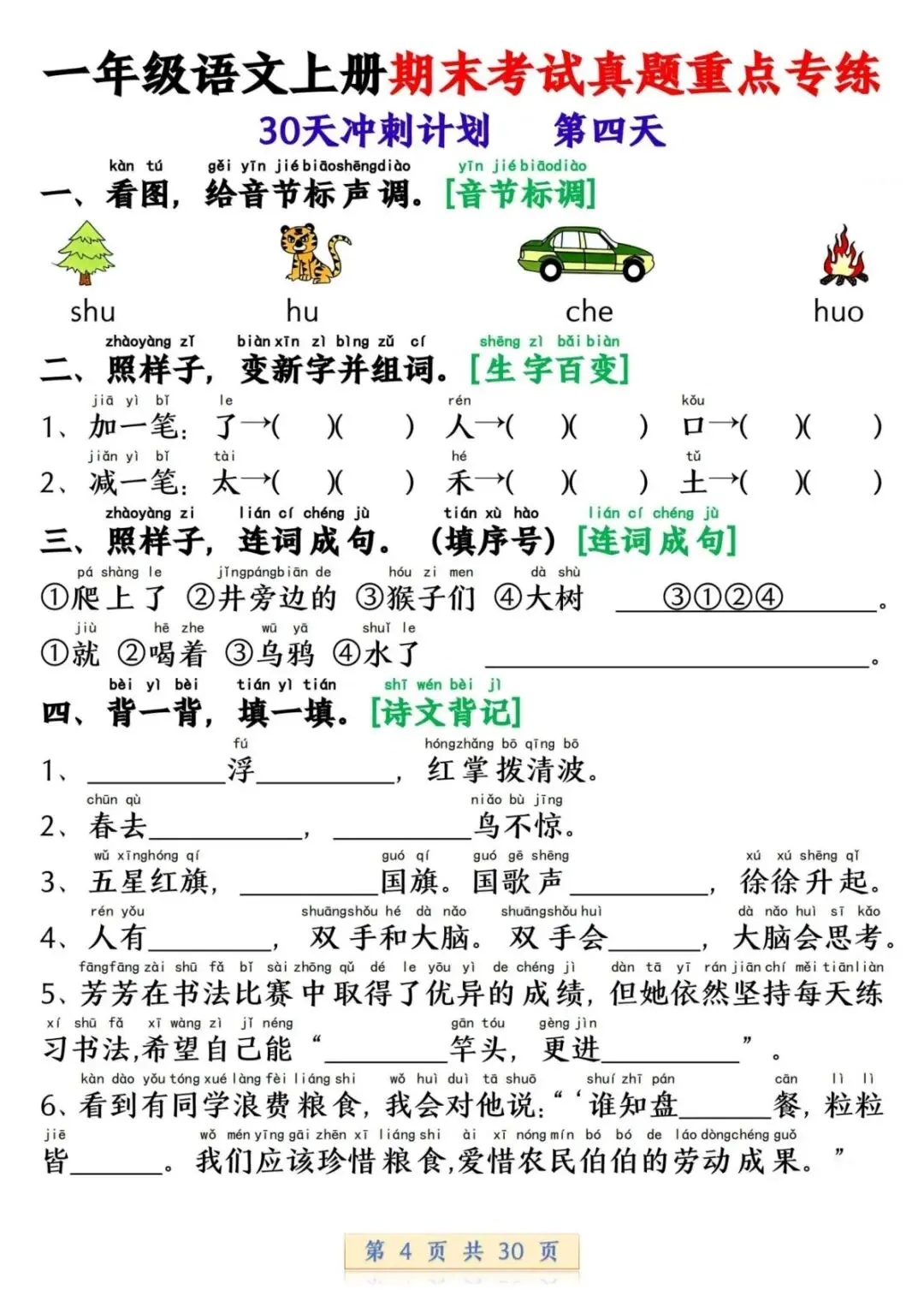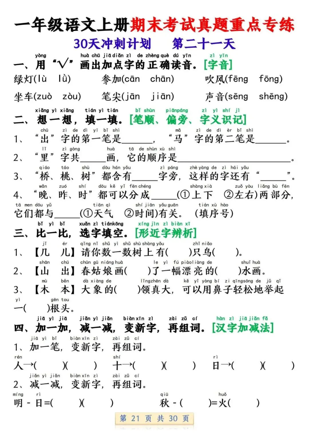 一年级语文上册期末考试真题重点专练 30 页新鲜出炉!涵盖课本所有重点内容,题型贴合期末考真题,从基础到提升,梯度合理。孩子练完能摸清考试套路,减少失分点。打印方便,省心省力,是期末复习的绝佳帮手!