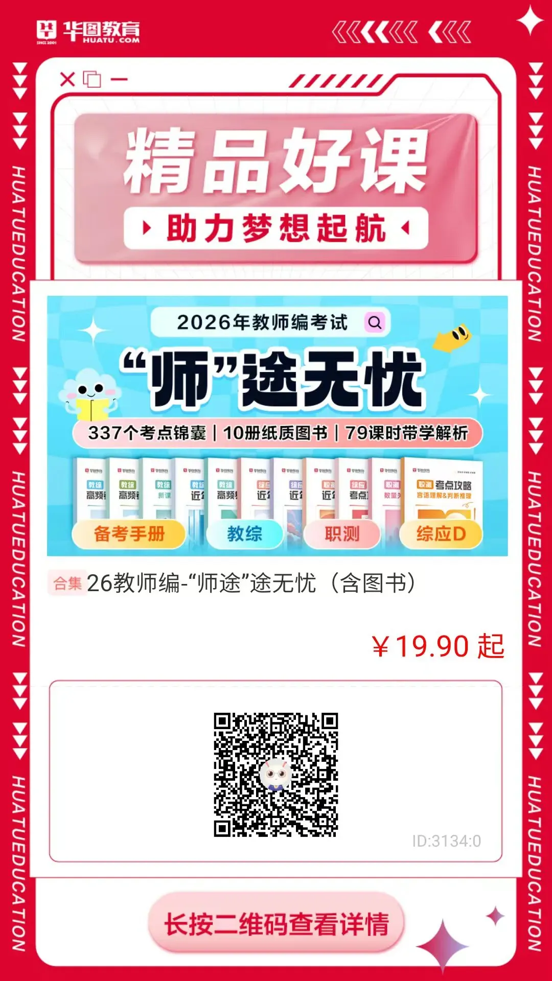 请应聘人员于2026年1月28日9:00至2026年2月4日17:00,登录公开招聘报名系统(https://zhaopin.ftedu.cn/dashboard/202602)进行网上报名。每名应聘人员限注册一个账号、报一个岗位。初次登录系统进行报名时,请以身份证号和手机号注册新用户,并记住“用户名”和“密码”,以便再次登录。应聘人员要仔细阅读公告、岗位需求表,确保系统中所提交的信息真实、完整、准确、符合岗位要求。报名后请务必关注网上资格审核结果,审核通过后才算报名成功。2月4日17:00后报名系统关闭,应聘人员不能再报名或更改其他个人信息;报名系统关闭后,网上报名审核不通过者,不能再修改个人信息或改报其他岗位,且不能进入网上资格复审环节。请应聘人员把握好报名时间。应聘人员除填报个人信息外,还需提交以下材料原件照片:1.本人下载打印后手写签字的《应聘资料真实性和完整性承诺书》(详见附件2;下载打印后签字,再拍照);3.本人户口簿首页(写有户别、户主姓名和住址页面)及本人页;4.2026年度应届毕业生还需提交:毕业院校就业主管部门盖章的高校毕业生就业推荐表,就业推荐表上须明确标注毕业生的培养方式(统招、非定向等)、生源地、学历、学制和毕业时间,如推荐表中未明确以上信息,请以证明方式体现。学校就业主管部门盖章的普通高校毕业生就业推荐表上注明“统招”或“非定向”的可提供就业推荐表,无需另外开具统招证明;5.2024和2025年毕业生还需提交:最高学历学位毕业证和学位证;6.留学回国人员还需提交:毕业证及其中文翻译件、教育部认证的学历学位材料(由教育部留学服务中心出具);如尚未取得毕业证和认证材料,提交在读证明或成绩单及其中文翻译件;资格初审结束3个工作日内,应聘人员可登录报名系统查看资格复审结果。资格复审不通过者,不能进入下一环节。考核形式为面试(部分岗位为笔试和面试,具体详见岗位需求表),由招聘单位组织,具体时间和要求以各招聘单位通知为准,逾期不参加者视为自动放弃。考核形式为笔试和面试的岗位,专业技能考核成绩=笔试成绩×30%+面试成绩×70%。成绩实行百分制,划定合格分数线为60分。每个招聘岗位按照拟招聘人数与参加面试人数1:1的比例,从高分到低分依次确定进入考察体检环节人选,成绩低于合格线的应聘人员不能进入下一环节。考核成绩于考试后在丰台区人民政府网站公开招聘栏公布。(http://www.bjft.gov.cn/ftq/gkzp/list.shtml)考察和体检由招聘单位具体组织。考察内容主要包括应聘人员的思想政治表现、道德品质、业务能力、工作实绩、个人人事档案等。体检根据相关文件规定,参照《公务员录用体检通用标准》执行。考察和体检均合格人员确定为拟聘用人员,名单在丰台区人民政府网站公开招聘栏公示,公示时间为7个工作日。拟聘用人员公示前如出现应聘人员个人放弃或考察、体检不通过等情况,招聘单位可根据实际情况,按专业技能考核成绩由高到低排序,选择是否进行递补。一经公示,如出现招聘岗位人选空缺情况,不再递补。(一)资格审查贯穿公开招聘工作全过程,在招聘各环节发现考生不符合报考资格条件的,均可取消其报考资格或者聘用资格。应聘人员须完整提供真实、有效的个人信息以及证书、证件等相关材料。凡与报名条件不符或提供虚假信息、伪造相关材料、隐瞒相关重要事项者,一经发现,立即取消报考资格,已办理聘用手续者取消聘用,本人承担由此产生的一切后果。从报名开始到招聘结束期间,考生应保证报名时所留电话畅通,因电话联系不畅造成无法通知到考生本人的,责任由考生本人承担。考生应自行及时上网查阅各项公告公示事宜,因考生原因未能参加下一步招聘程序的,责任由考生本人承担。应聘人员应按照招聘单位规定的时限及要求,配合完成考察、体检及调入等工作,未能按照规定时限及要求完成的,取消应聘资格。(二)拟聘用人员名单公示无异议后,拟聘用人员须协助招聘单位及时办理岗位聘用相关手续。(三)非京籍应届毕业生不符合《北京市引进毕业生管理办法》规定条件的,取消聘用资格。咨询时间:工作日9:00-11:00,14:00-17:00教综+职测+综应29.9元:10本图书79课时网课