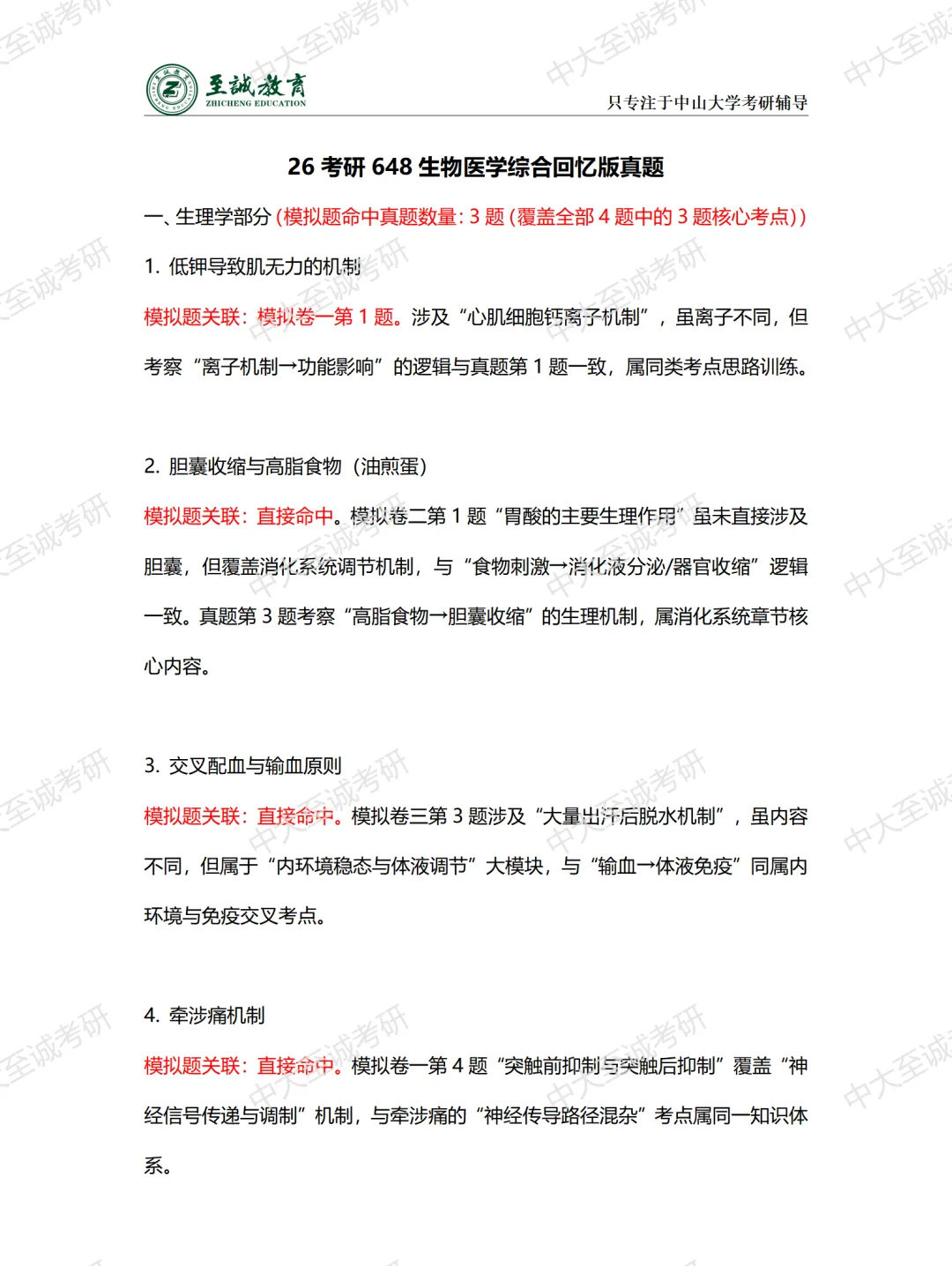 初试蓝宝书 - 648生物医学综合专业课中山大学考研初试笔记、考点、真题总结资料更新完成!(适用于2025年26考研备考)