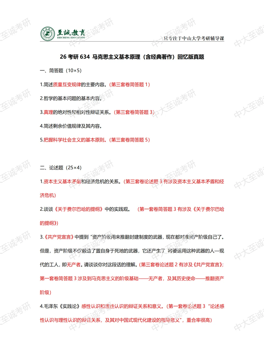 试蓝宝书 - 马理论专业课634马原理&837专业综合基础中山大学考研初试笔记、考点、真题总结资料更新完成!(适用于26备考)