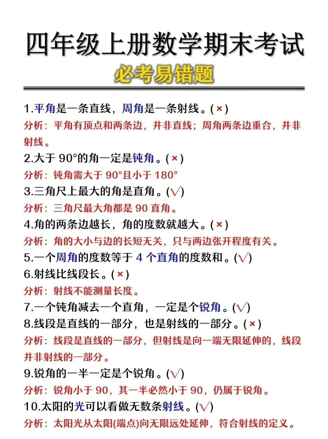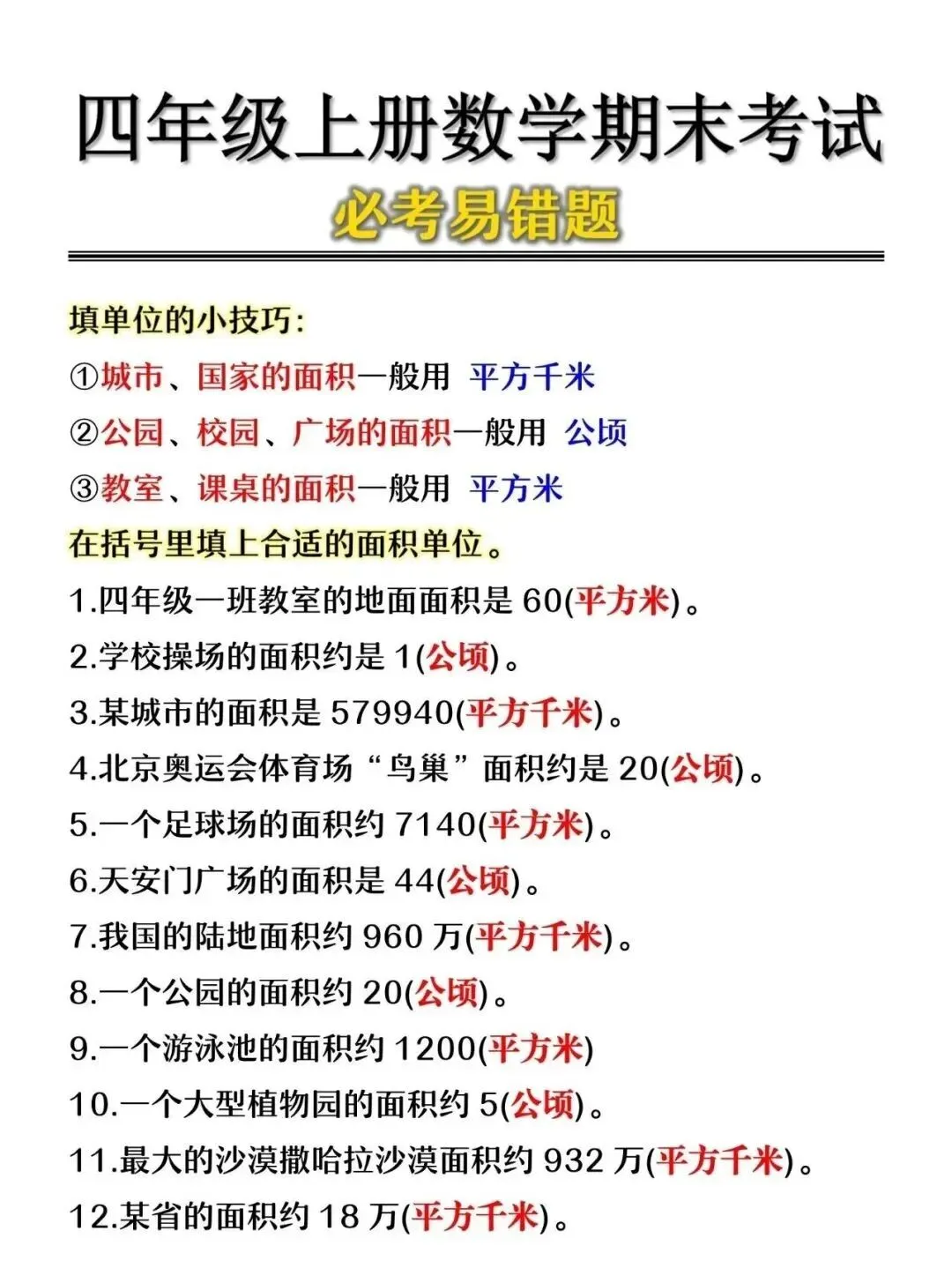 >四年级上册数学期末考试必考易错题,家长替孩子收藏!