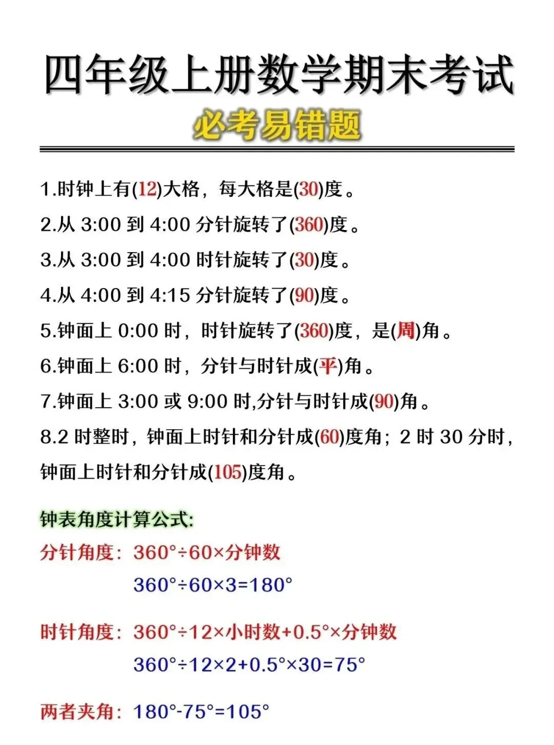 四年级上册数学期末考试必考易错题,家长替孩子收藏!