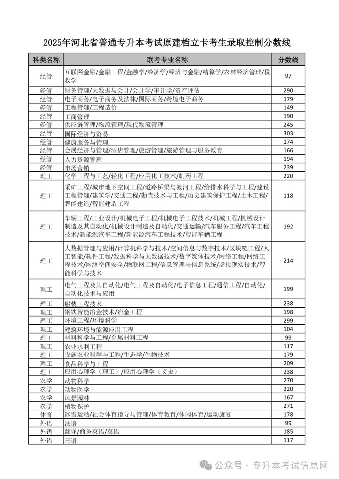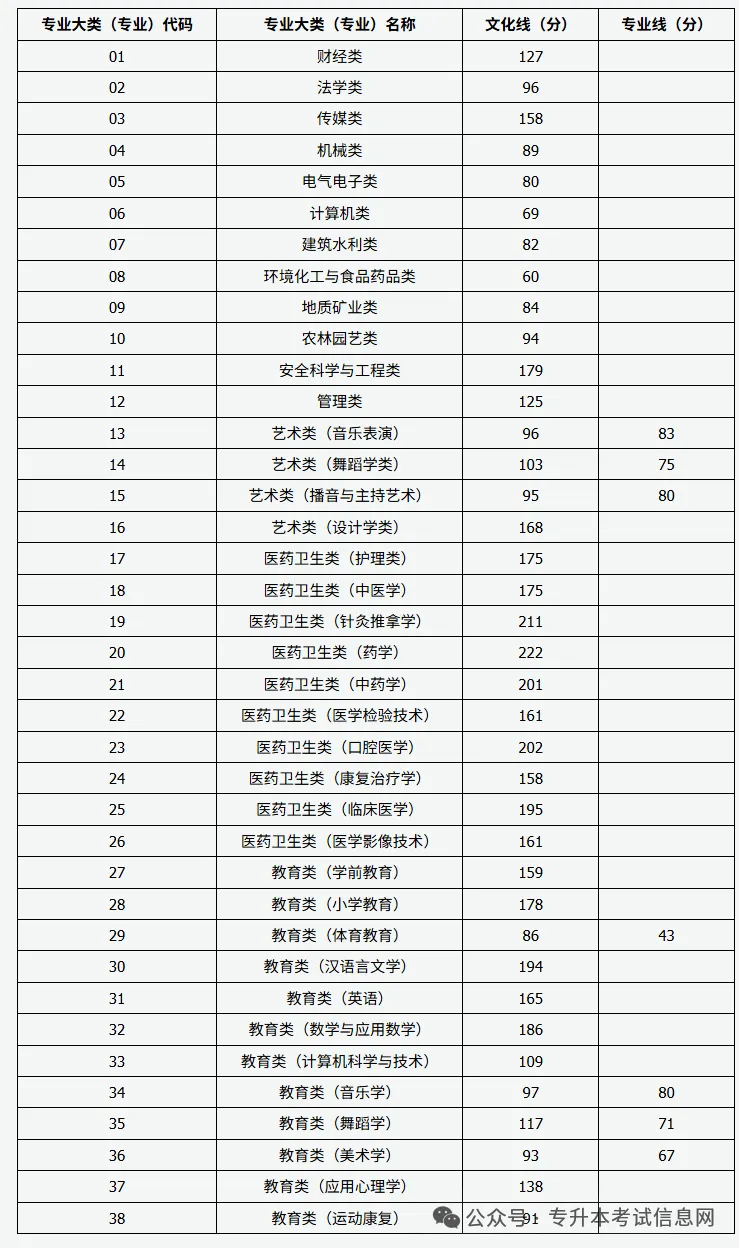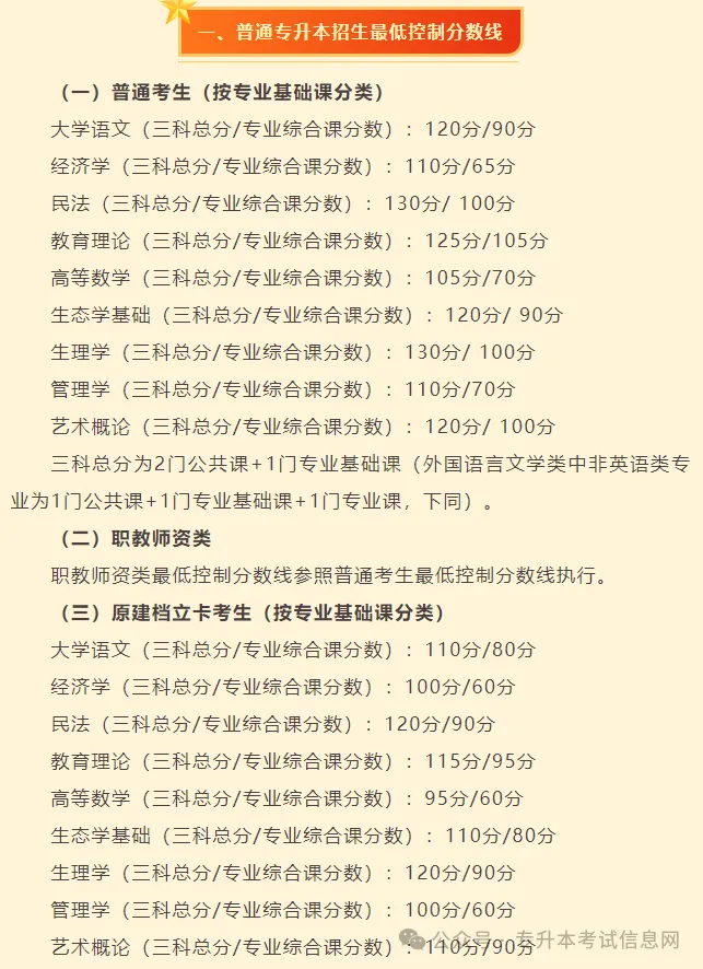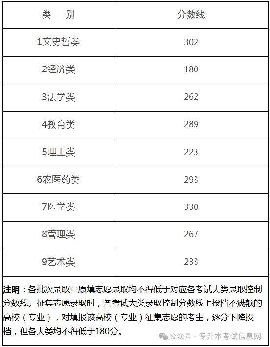 我省2025年普通高校专升本招生考试成绩最低要求已确定,现公布如下: