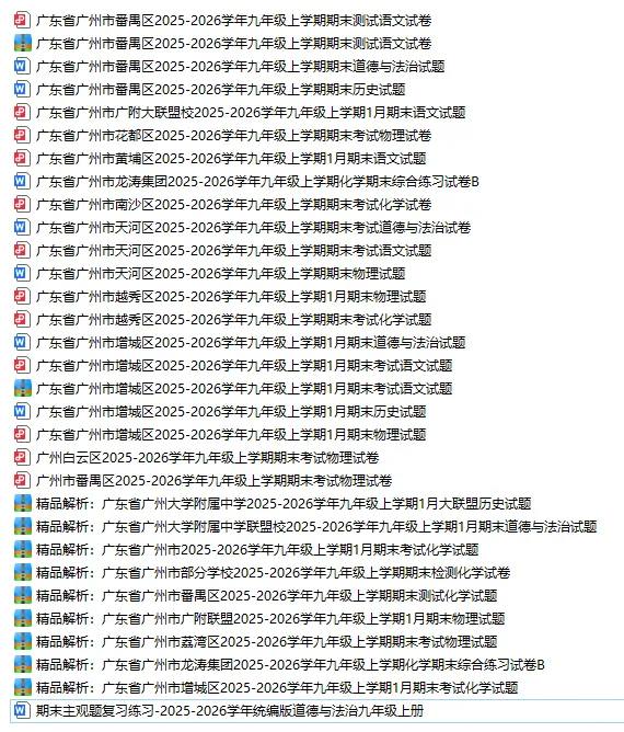 广东省广州市越秀区2025-2026学年九年级上学期期末考试文化试题