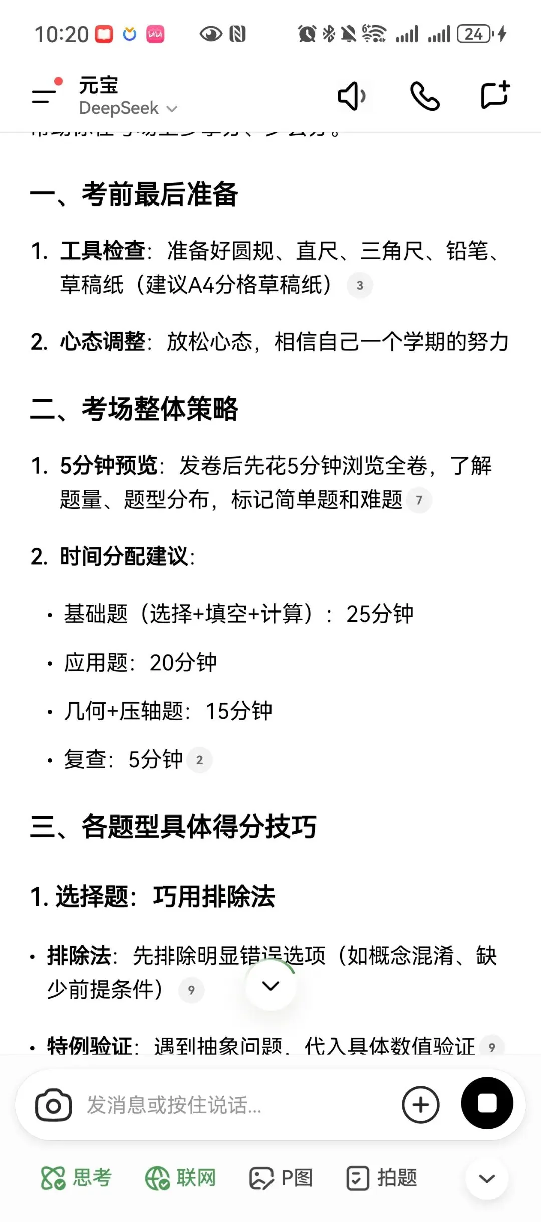 2. 选择题:可以用选项带入,特殊值,排除法筛错项,不确定时选“高频正确特征项”,不会就标记“蒙一个”(别空着),最后留1-2分钟复核标记题。