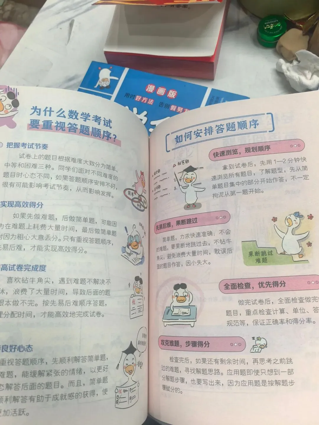 四:可以揣摩一下出题老师,改卷老师的心理。期末的时候考试老师一般会改卷按得分点来,改的也会比较松。哪些容易丢分,哪些容易得分。画图题可以直接测量估算。有些答案可以猜个大概,这个可以从平时试卷积累。