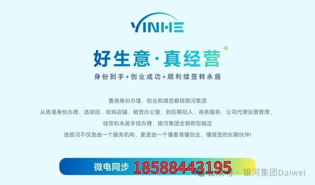 香港身份办理及续签转永居全流程服务:生意顶让、项目对接、商业计划书定制、公司注册开户、办公室租赁、人才招聘、代运营及续签材料筹备。需要请直接找银河Daiwei帮您规划:18588443195;18588447901;