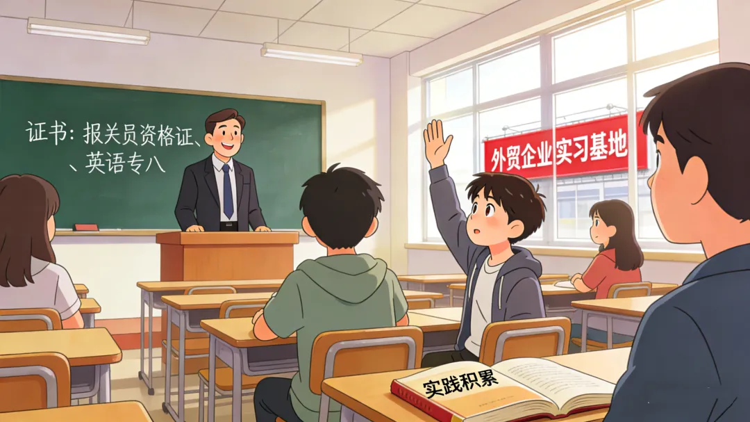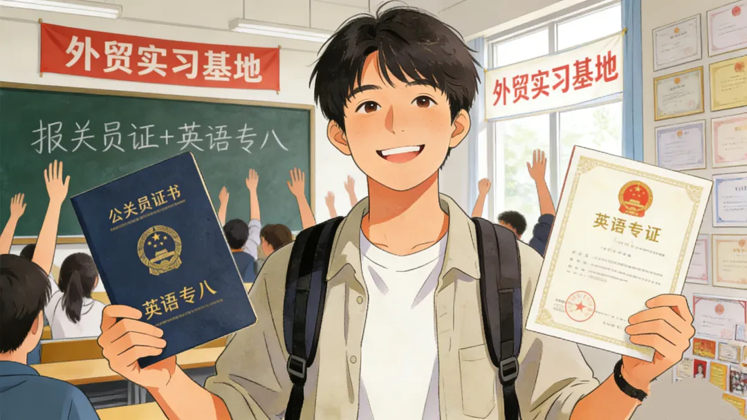拿下报关员证 + 英语专八,实习实战攒经验。