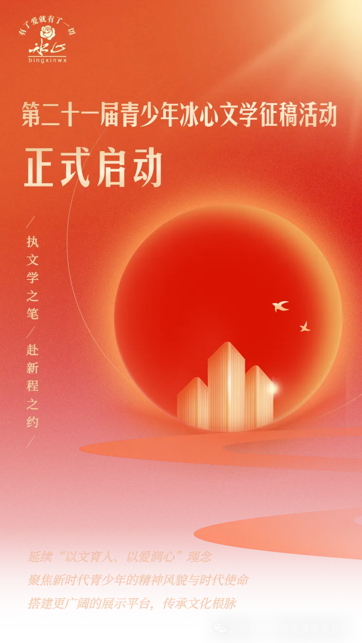 ✨亲爱的家长们,第二十一届青少年冰心文学征稿活动正式启动啦!