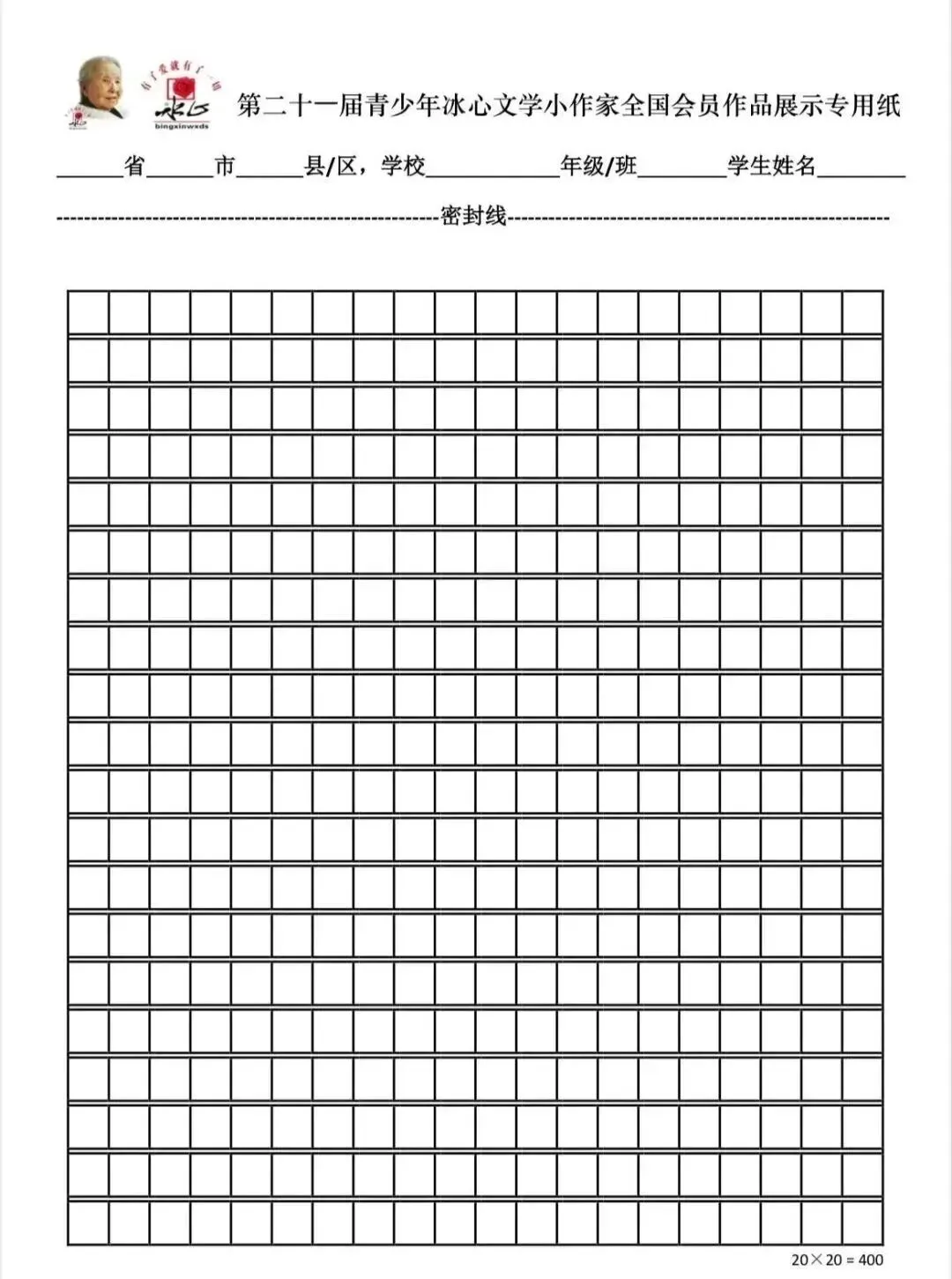 1)冰心杯作文稿纸要求:需使用冰心作文官方规定稿纸进行写作,自行打印后抄写并提交。2)冰心杯作文格式要求:表头请在冰心专用稿纸上方写上:学校+年级+班级+姓名3)冰心杯作文书写要求:小低组可以使用铅笔书写,小高组及以上建议使用签字笔书写。4)冰心杯作文交稿要求: