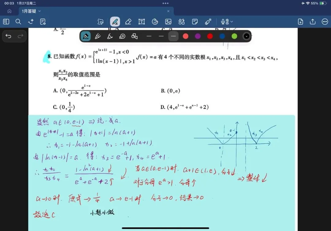 第八题,函数的数形结合,多变量的消元