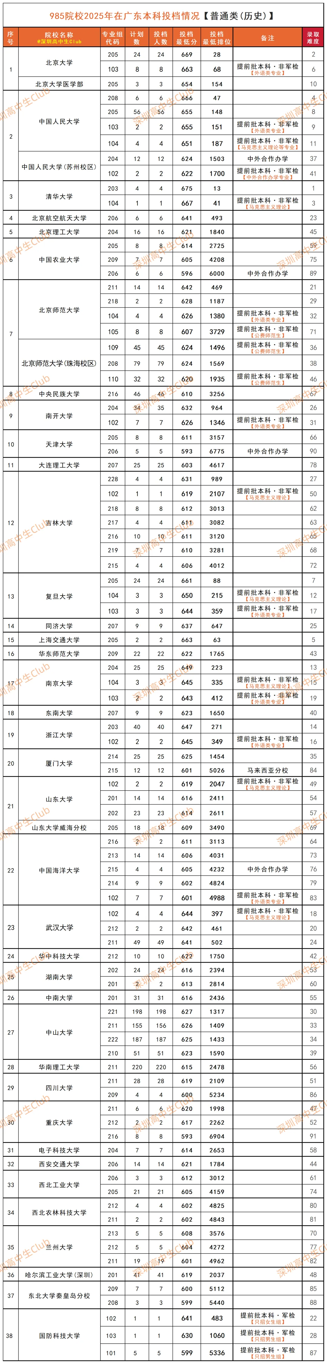 今天整理了广东2025年985院校提前批本科(军检+非军检)及本科批普通类录取最低分及排名,并且罗列了所有的院校专业组,包括中外合作专业。高一高二高三的同学及家长重点关注!