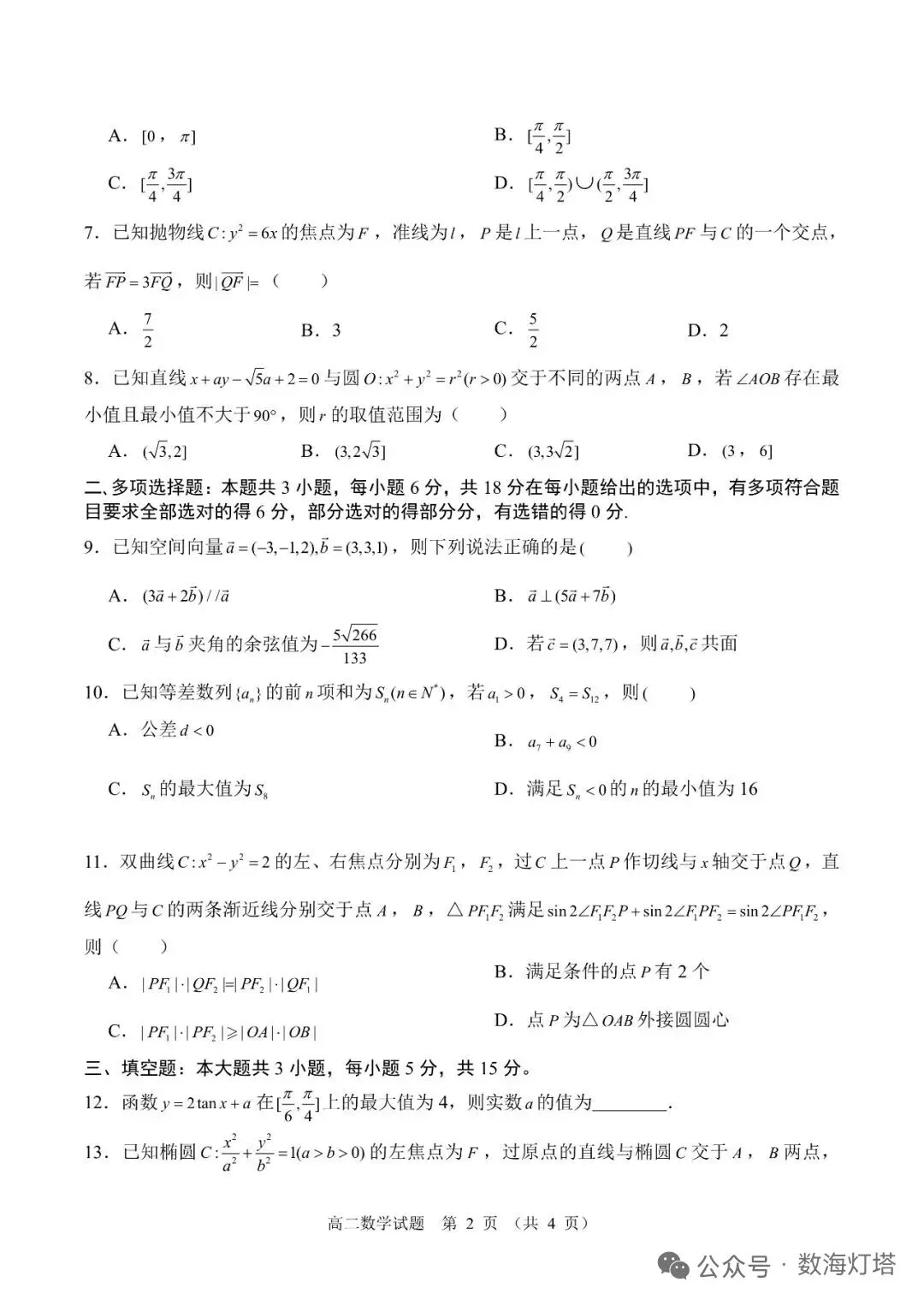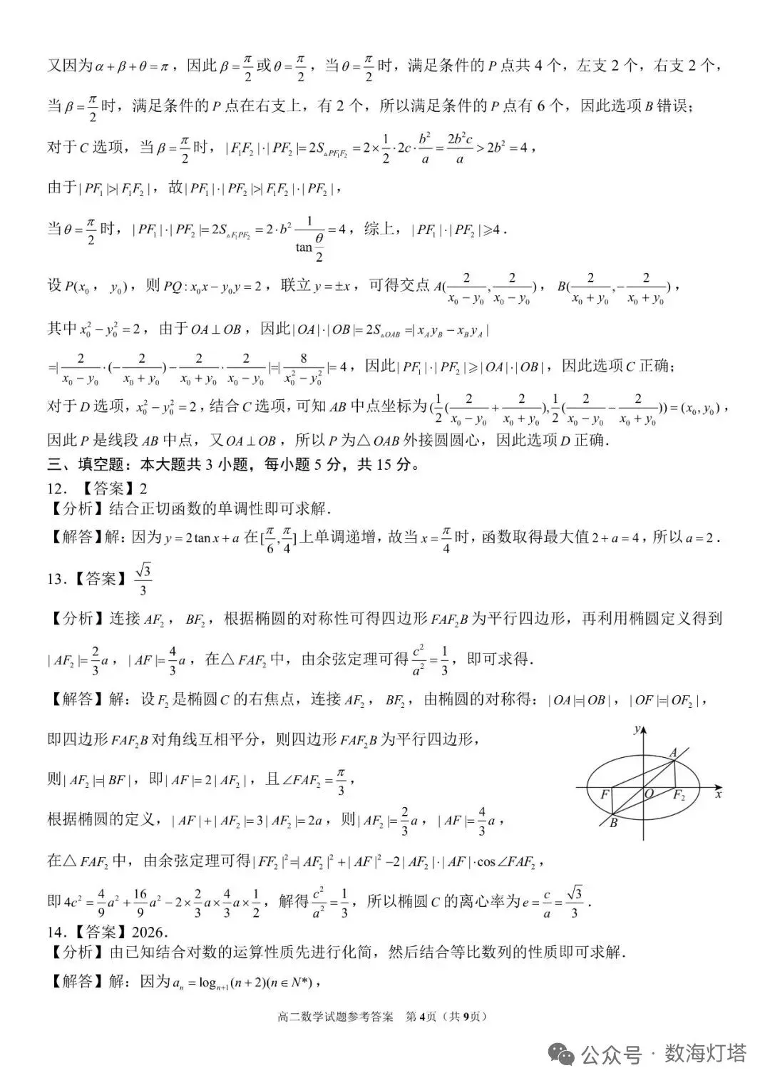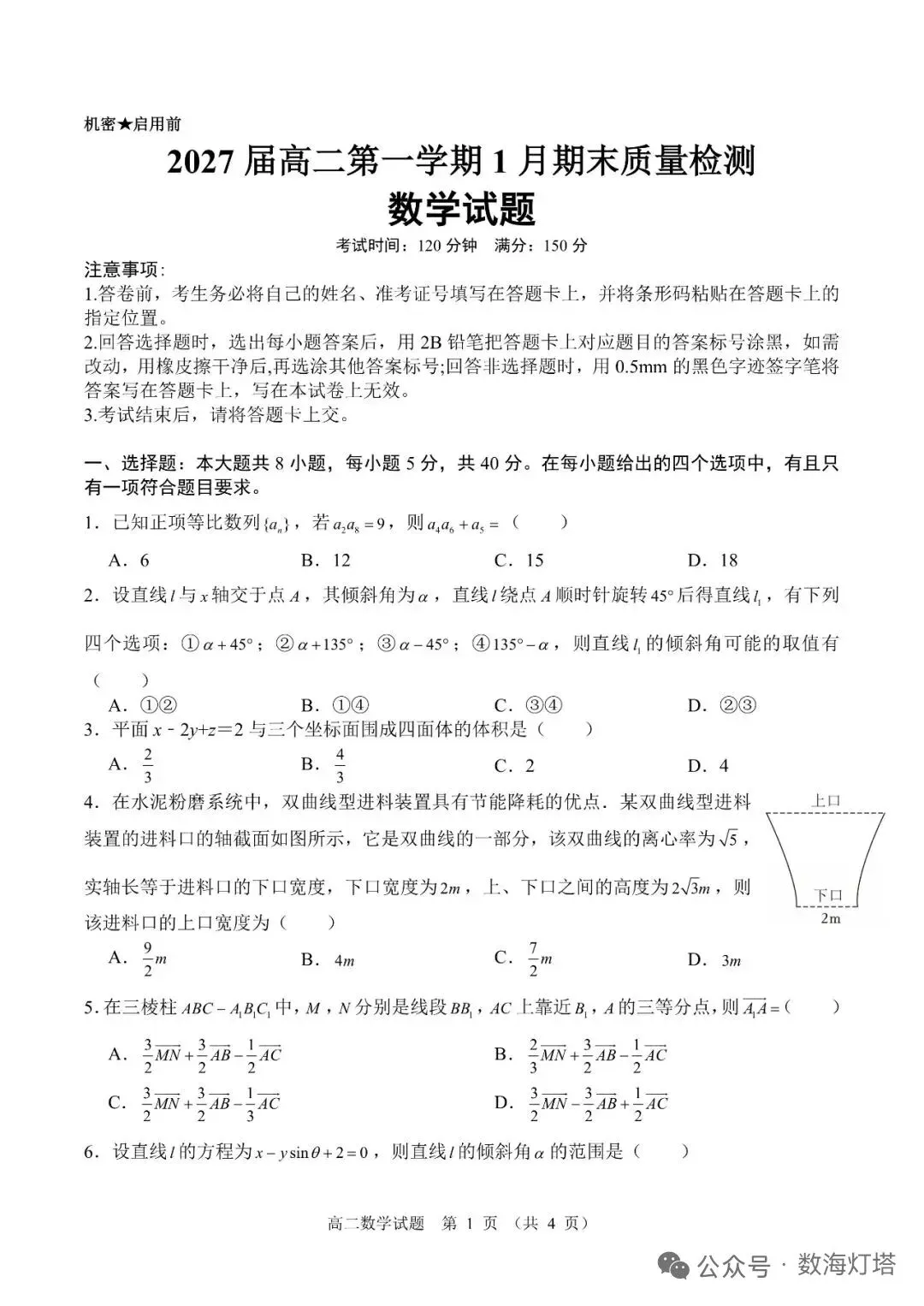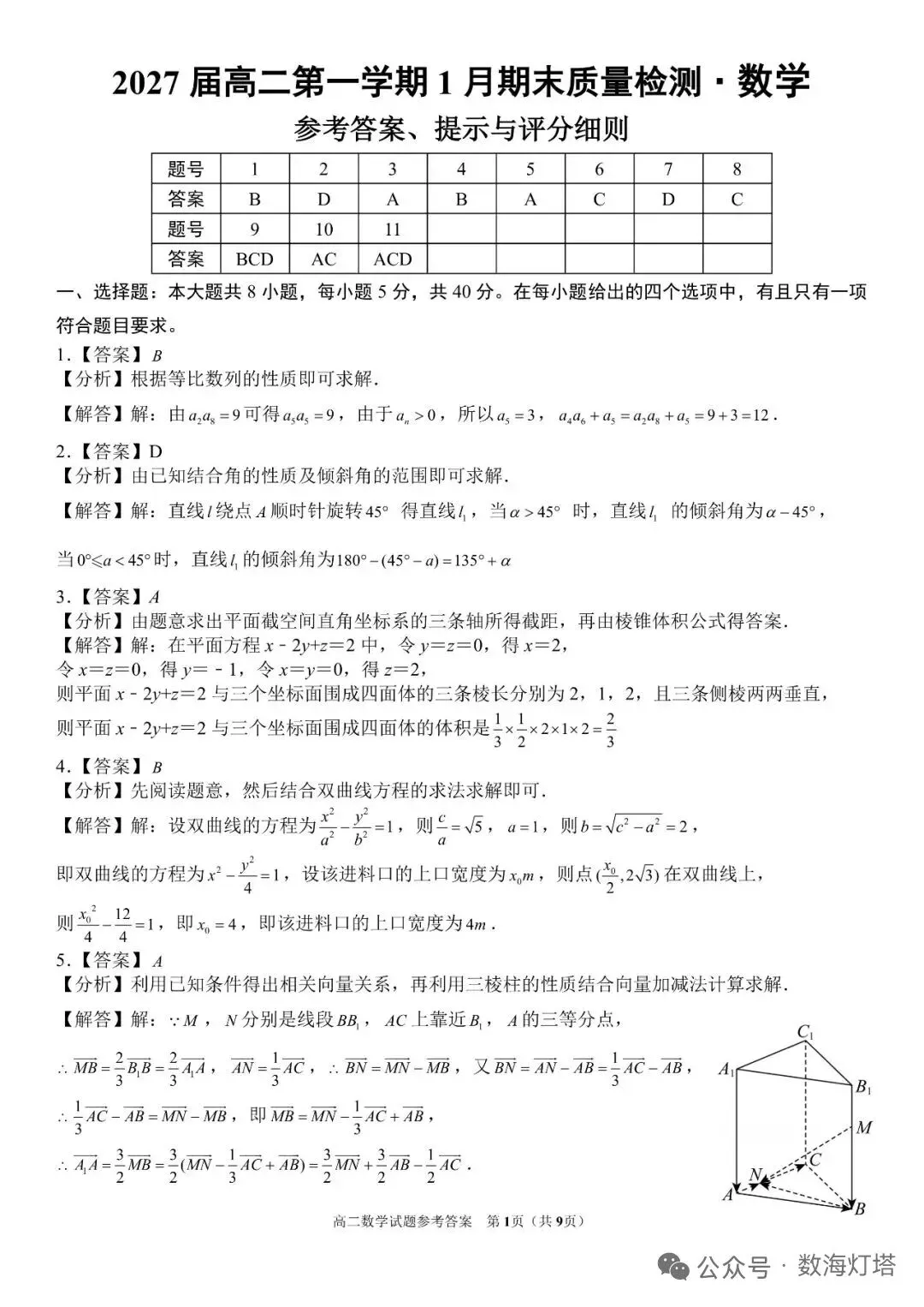 >吉林省部分学校2026高二1月期末考试数学试题和参考答案