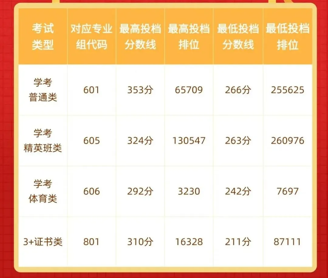 3+证书高考院校各专业录取分数线,是考生填志愿报考的重要择校参考之一,通过往年专业最高、最低录取分以及排位,可以直接看出该校专业的冷热程度。但一般广东省教育考试院只公布院校投档分,而院校各专业的最低录取分,需要到院校官方网站或公众号查询。建议大家在锁定志愿院校的同时,再通过专业录取分和排位,预测自己被录取的概率,从而制定合理的志愿填报方案,所填专业志愿做到冷热搭配。如果有明确的意向专业,也可以通过对比该专业在不同院校的专业录取分,再结合自己的分数和排位,反向锁定可报的目标院校。