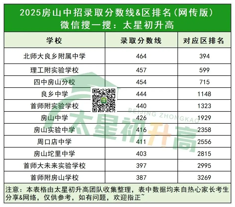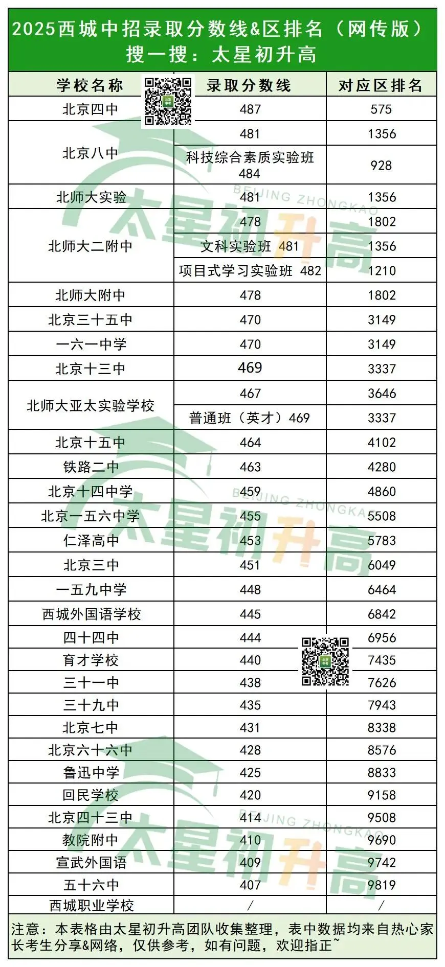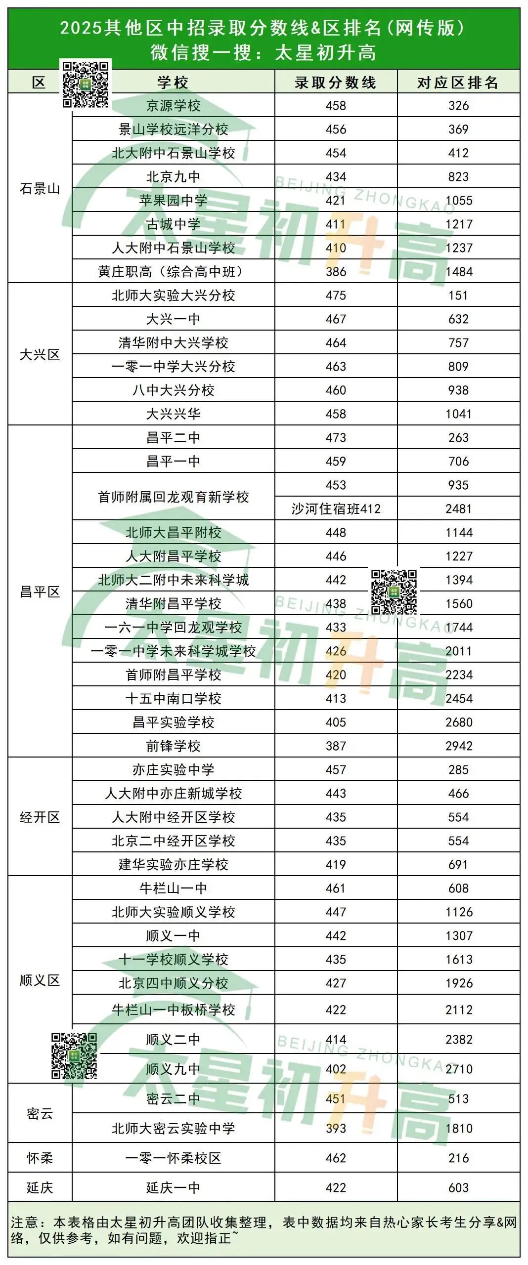 除了对照往年区排,太星初升高团队还整理了2025年北京中考各校的录取分数线,2026中考及以下考生可以参考定位目标校!