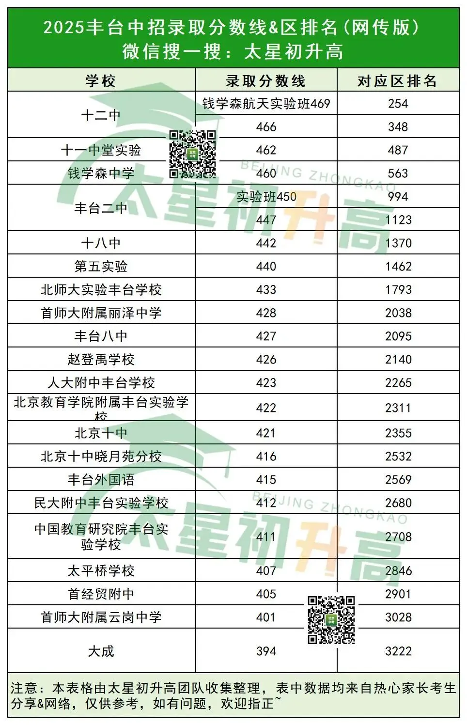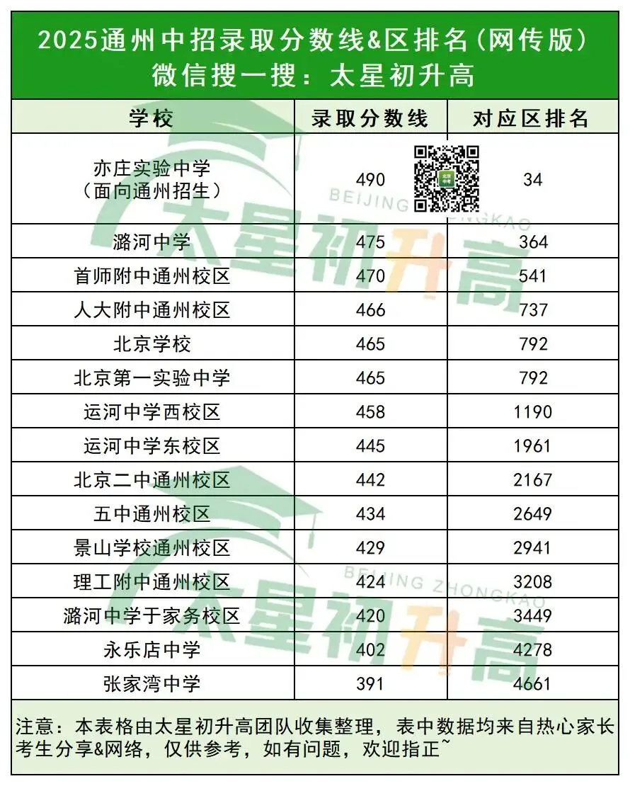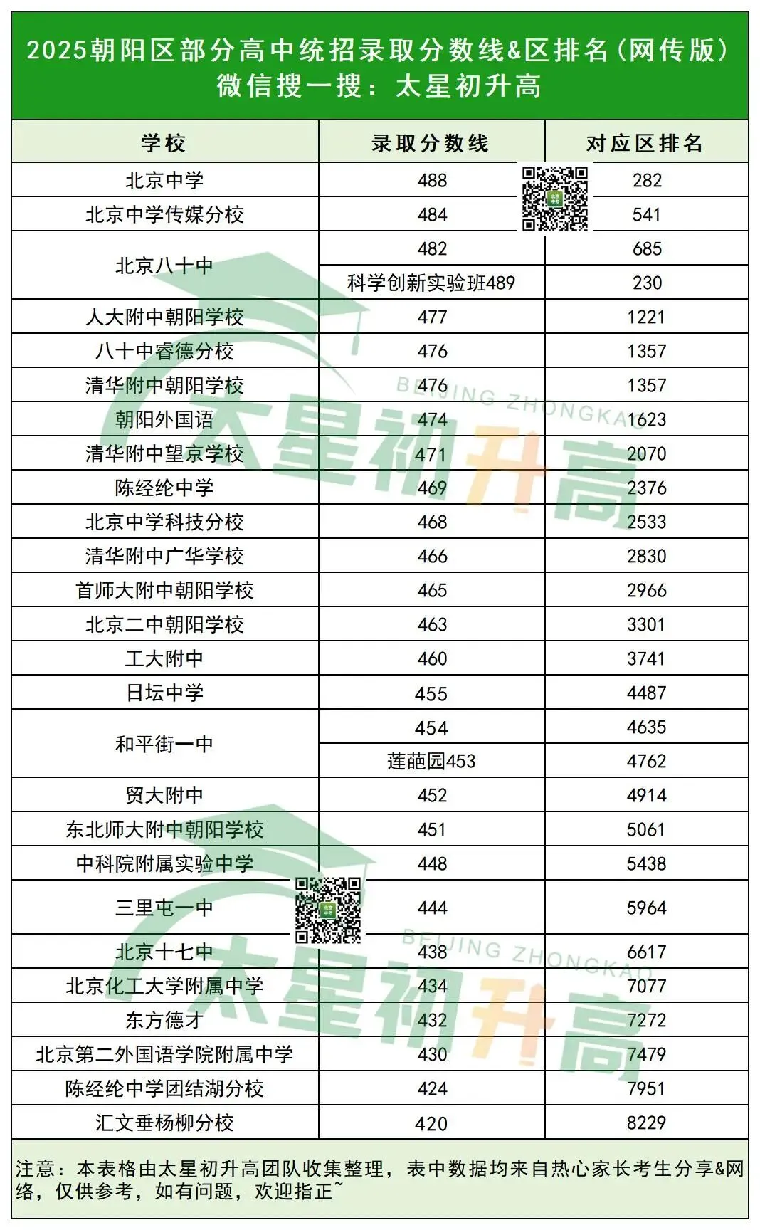 除了对照往年区排,太星初升高团队还整理了2025年北京中考各校的录取分数线,2026中考及以下考生可以参考定位目标校!