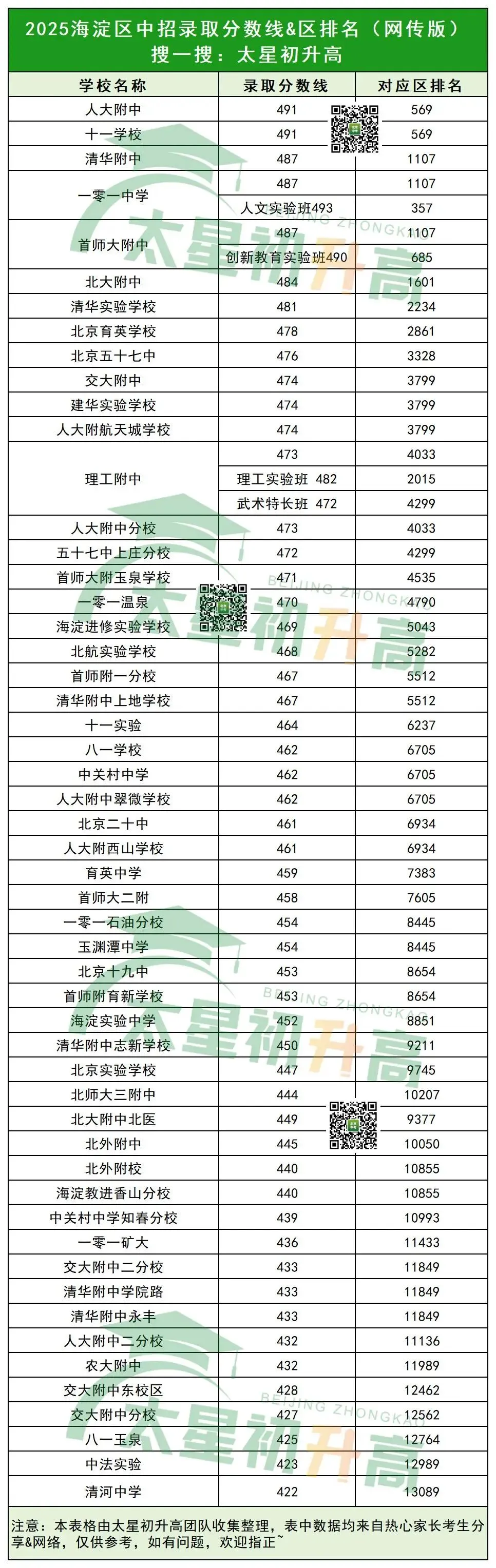 海淀、东城、房山初三区排已出,但多区热心家长分享出了成绩不出区排!?怎么知道自己的成绩对应的区排是多少呢?如何定位目标校?帝都学考特邀太星初升高整理了往年区排和223所学校2025北京中考录取分数线&区排,大家可以根据自己的期末成绩,进行参考定位!