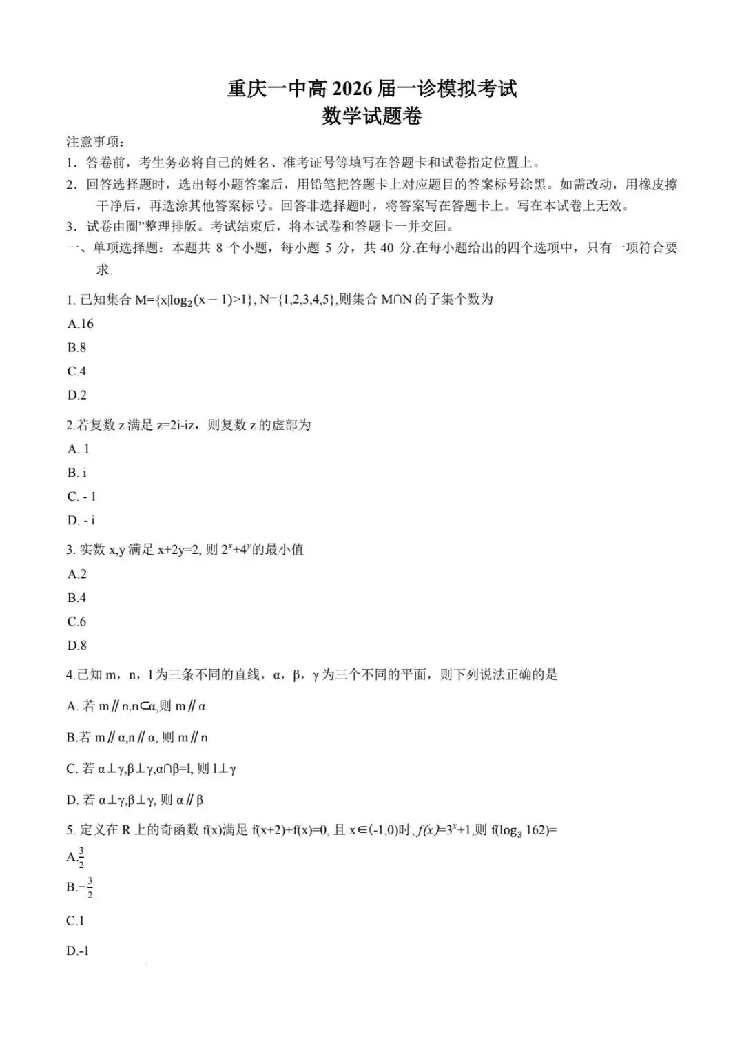 (进群+电子试卷及解析)