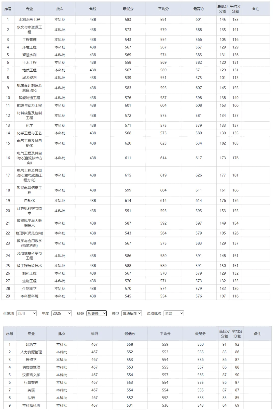 三峡大学是经国家教育部批准,由原武汉水利电力大学(宜昌)和原湖北三峡学院于2000年5月25日合并组建。原武汉水利电力大学(宜昌)的前身是于1978年成立的葛洲坝水电工程学院,先后隶属于水利电力部、能源部、电力工业部、国家电力公司,1996年与原武汉水利电力大学合并组建新的武汉水利电力大学,成为“211工程”建设大学的重要组成部分。原湖北三峡学院是由原宜昌师范高等专科学校、宜昌医学高等专科学校、宜昌职业大学于1996年合并而成。 学校现有4个博士学位授权一级学科、2个博士专业学位授权点、4个博士后科研流动站、27个硕士学位授权一级学科。 学校共有22个学院,招生本科专业55个,涵盖理、工、文、医、经、管、法、教育、艺术九大学科门类;现有国家级一流本科专业建设点23个,14个专业通过工程教育、医学教育、师范教育专业认证;有国家级特色本科专业5个,省级本科品牌专业10个;获批国家卓越工程师教育培养计划专业7个,国家级本科专业综合改革试点项目1个,省级战略性新兴(支柱)产业计划9个,省级本科专业综合改革试点项目6个,省级“荆楚卓越人才”协同育人计划项目11项,省级试点学院2个,省级拔尖创新人才培育试验计划项目1个。2025年在川各专业录取分数线: