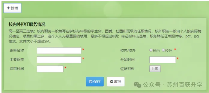 校内担任职务:班长、团支部书记、社团社长、学习/文艺/体育委员等