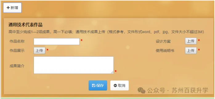高中至少完成1-2项成果,高一下必填;通用技术成果上传(格式参考,文件形式word、pdf、jpg,文件大小不超过3M)。