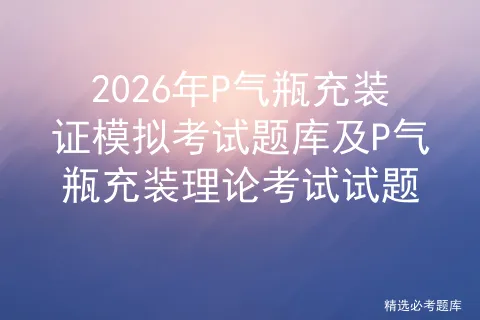 2026年P气瓶充装证模拟考试题库及P气瓶充装理论考试试题是由安全生产模拟考试一点通提供,P气瓶充装证模拟考试题库是根据P气瓶充装最新版教材,P气瓶充装大纲整理而成(含2026年P气瓶充装证模拟考试题库及P气瓶充装理论考试试题参考答案和部分工种参考解析),掌握本资料和学校方法,考试容易。P气瓶充装考试技巧经过题库老师和P气瓶充装已考过学员的汇总,相对有效而可行的复习方式就是对P气瓶充装的试题攻克,进行多方面的试题训练。2026P气瓶充装证模拟考试题库及P气瓶充装理论考试试题个人、培训学校进行考试前有效训练,确保学员学习后能顺利通过考试。
