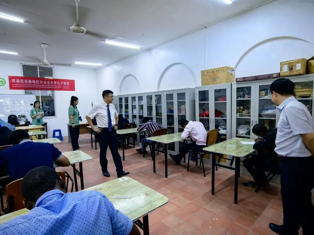 时值浙江师范大学校长邱利民教授率团访问桑给巴尔公立大学,邱校长一行在HSK考试期间对考试组织情况、考务组织和监考工作做巡查监督。