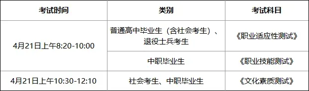 文化素质测试、职业适应性测试、职业技能测试时间为2025年4月21日,考场设在黄河交通学院东校区。