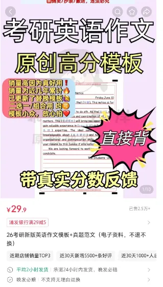 转载请联系授权(微信:wishforyou1995)大家好,我是蓝蓝,持续深耕公众号及虚拟资料相关项目3年,变现100w,目前26自媒体社群正在招募,希望能找到一群小伙伴一起进步一点点,。今天给大家分享的内容是:考研作文模板的变现。
