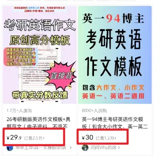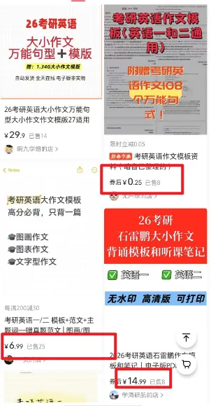 这个博主呢,就卡住了作文模板+定制的需求。对于的客群为准备考研的学生,一份通用的模板,首先可以让这些学生感受到模板的质量。