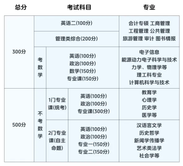 从分值上看,考研专业可以分为总分300分和500分的专业,不同门类的考试内容区别还是比较大。