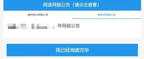 务必仔细阅读网报公告和考点公告,确认后点击“我已经阅读完毕”。