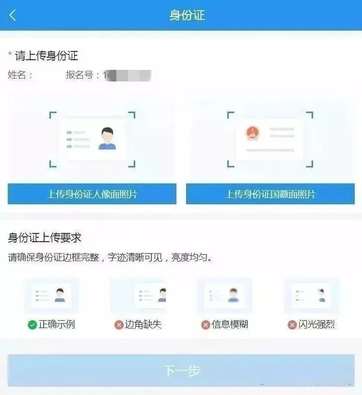 身份证照片:身份证正反面的彩色照片或扫描件,用于验证考生身份。