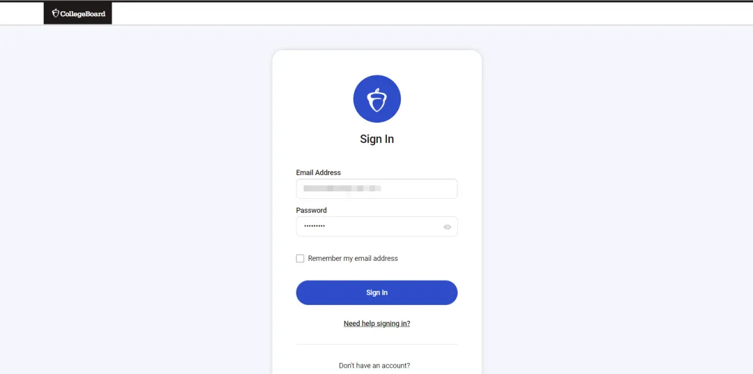 ① 输入https://www.collegeboard.org,进入官网页面,点击Student登录,输入考生之前注册的邮箱和密码,点击Sign in。