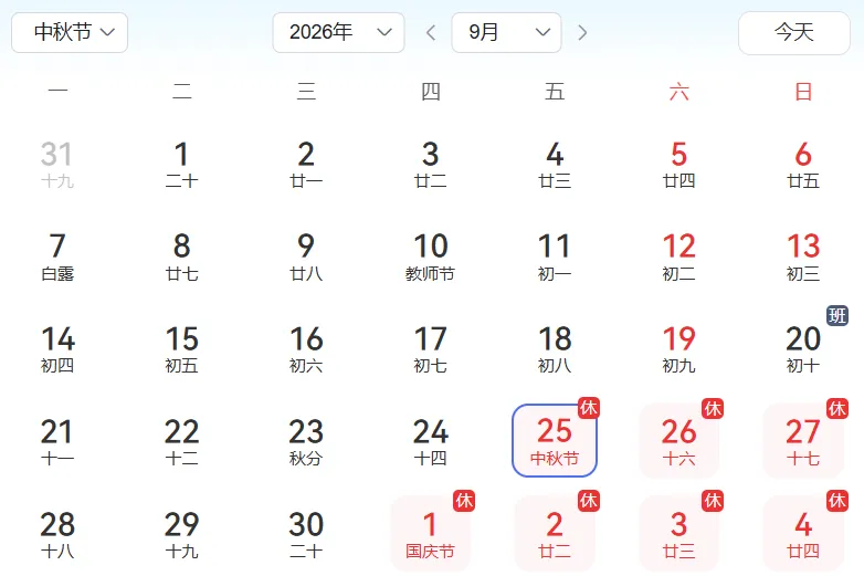 再结合2026年调休通知,9月20日(周日)因调休需要上班,这就排除了9月20日-21日考试的可能。