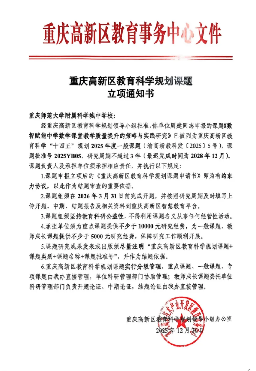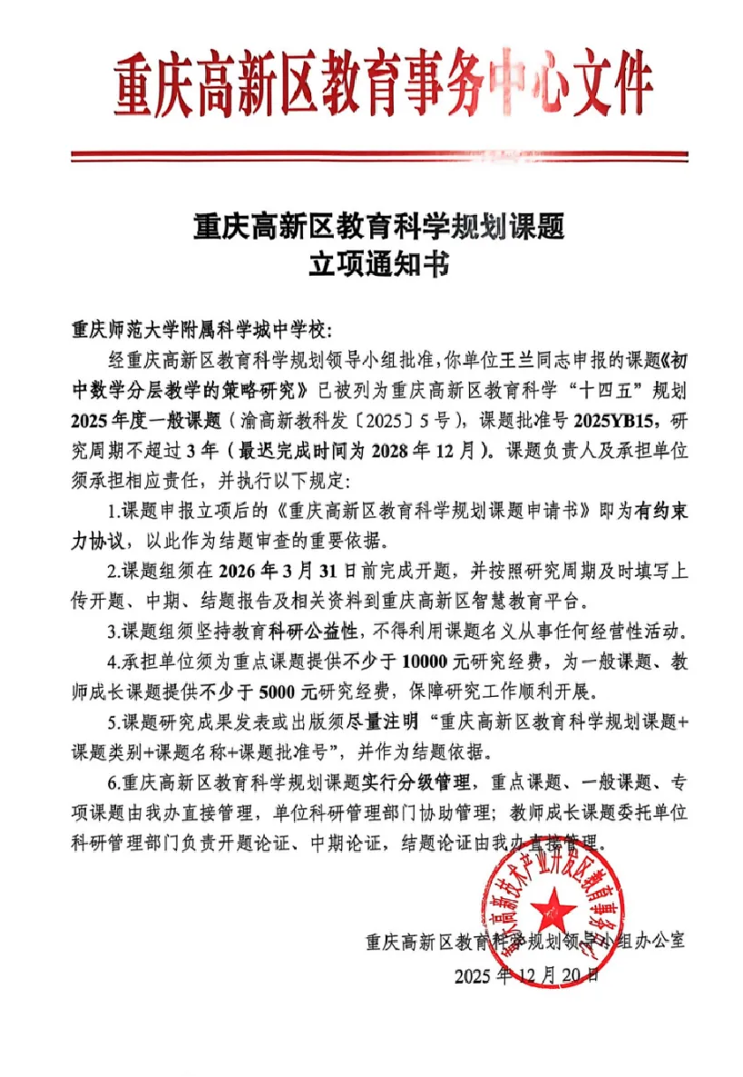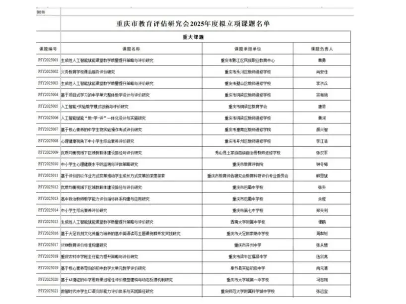 7项课题,立项重庆高新区教育科学“十四五”规划课题
