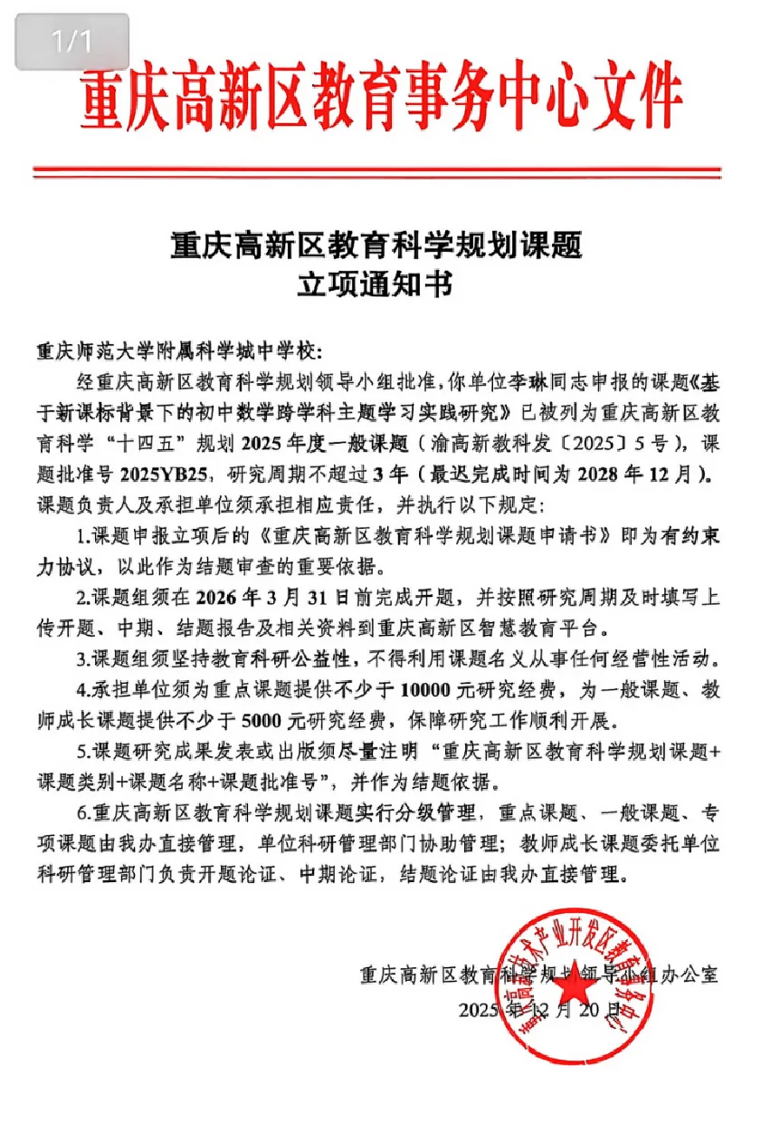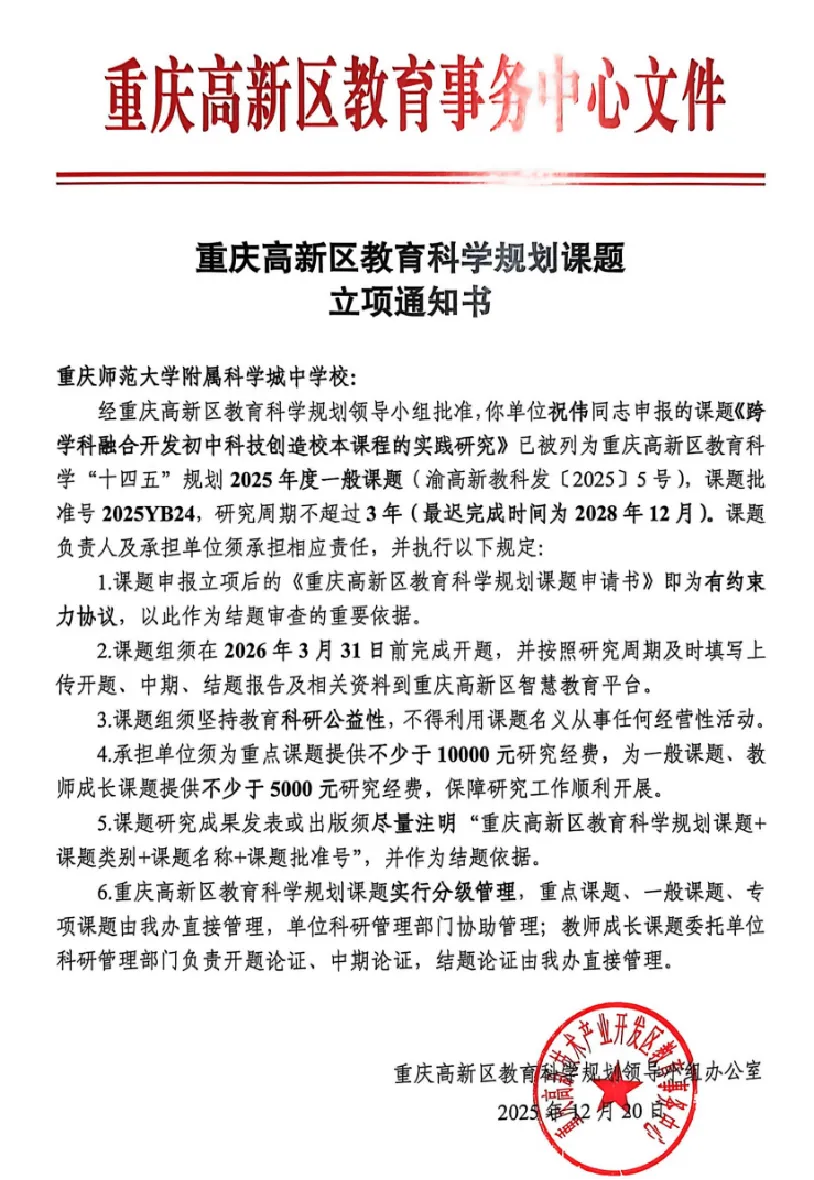 科研,让教师从经验型走向研究型,从教学执行者成长为教育创新者。本年度,学校课题研究实现多项突破: