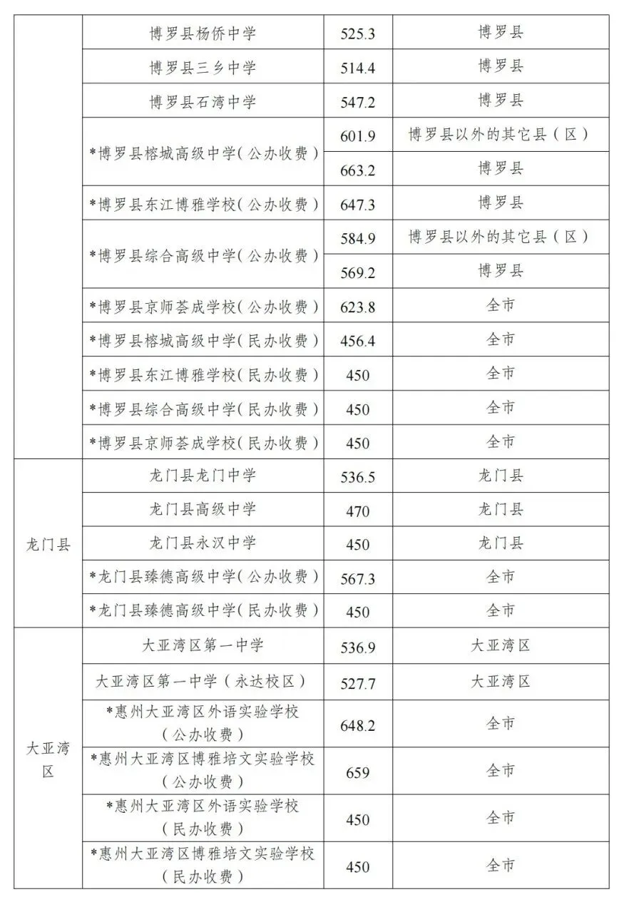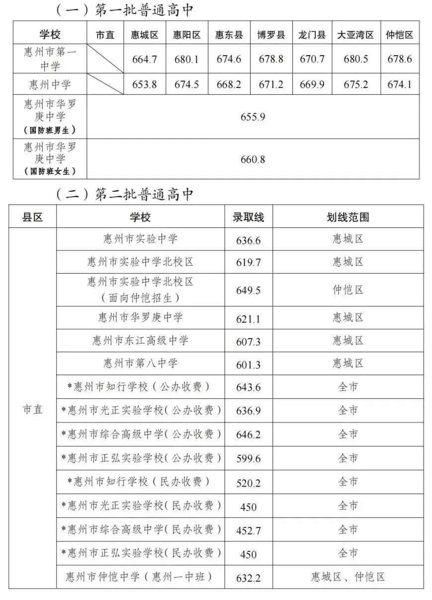 >2020-2025年惠州中考录取分数线汇总(高中版)