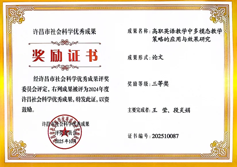 许昌市社科联优秀成果奖三等奖图片