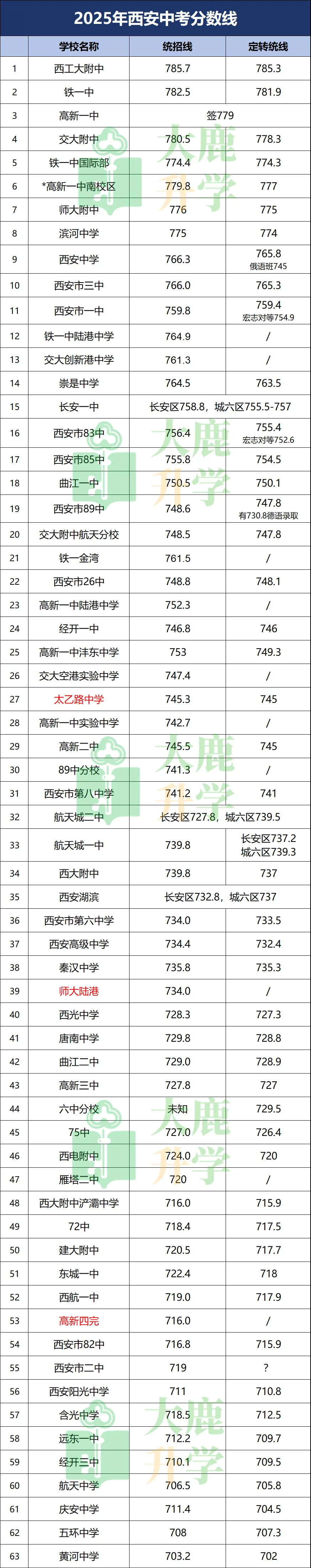 大鹿根据学校、家长、网传等多种信息渠道核实,整理了2025年西安市百余所高中学校录取分数线信息,个别数据还有待进一步核实。供2026届中考家长参考!