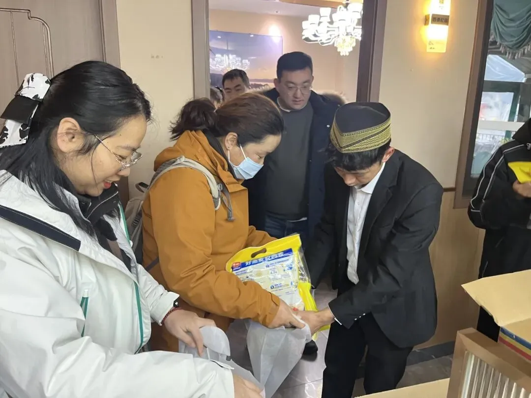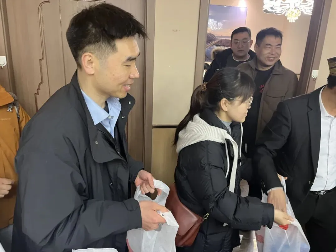 安全教育会议结束后,教务处为每位留校国培医生学员送上了精心准备的春节慰问品。慰问品是牛奶、零食等,是医生学员们的生活所需,同学们双手接过慰问品,脸上洋溢着感动的笑容,纷纷表示“虽然不能回家,但学校的关怀让我们感受到了家的温暖,这份慰问品让这个春节更有仪式感”。随后,温馨热闹的团年聚餐拉开帷幕,餐厅选择了符合少数民族同学口味的特色餐厅,每一道菜都承载着学校的关怀与暖意。聚餐过程中,教务处赵进老师与学员们亲切交谈,详细询问大家的学习进展与生活需求,倾听学员们在国培期间的收获与感悟。学员们纷纷举杯,互道新春祝福,畅谈学习心得与未来规划,现场欢声笑语不断,情谊在举杯换盏间愈发浓厚。