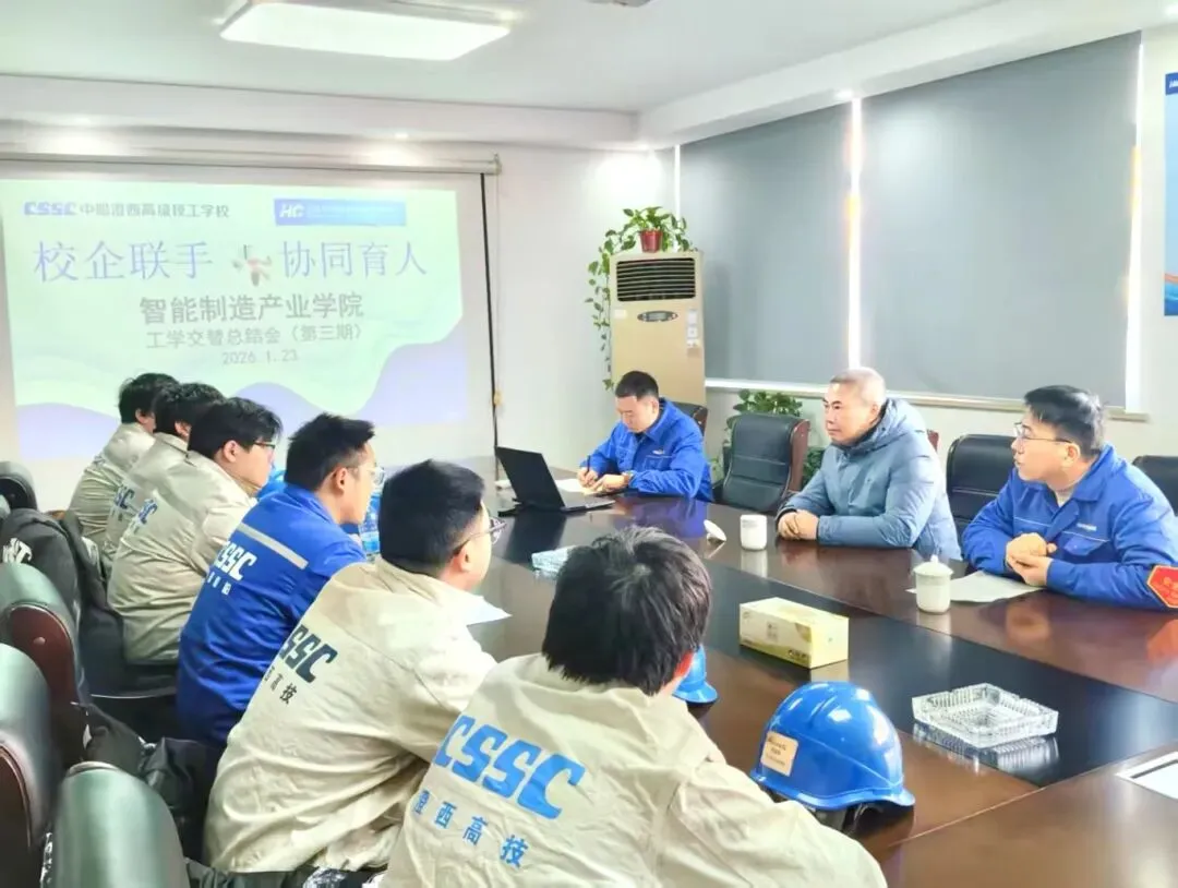 为进一步深化产教融合和校企合作的育人模式,共同搭建学生技能提升的平台。1月23日上午,中船集团旗下中船澄西船舶修造有限公司所属中船澄西高级技工学校教务处组织开展智能制造产业学院工学交替总结会。华澄特机公司副经理陶志龙、学校教务处主任陈猛参加了总结会,会议由产教教研组组长耿浩丰主持。